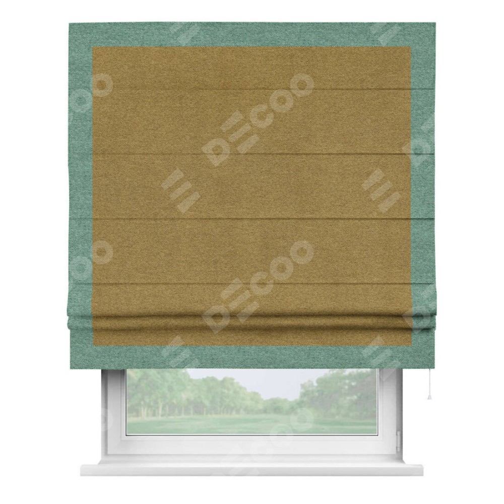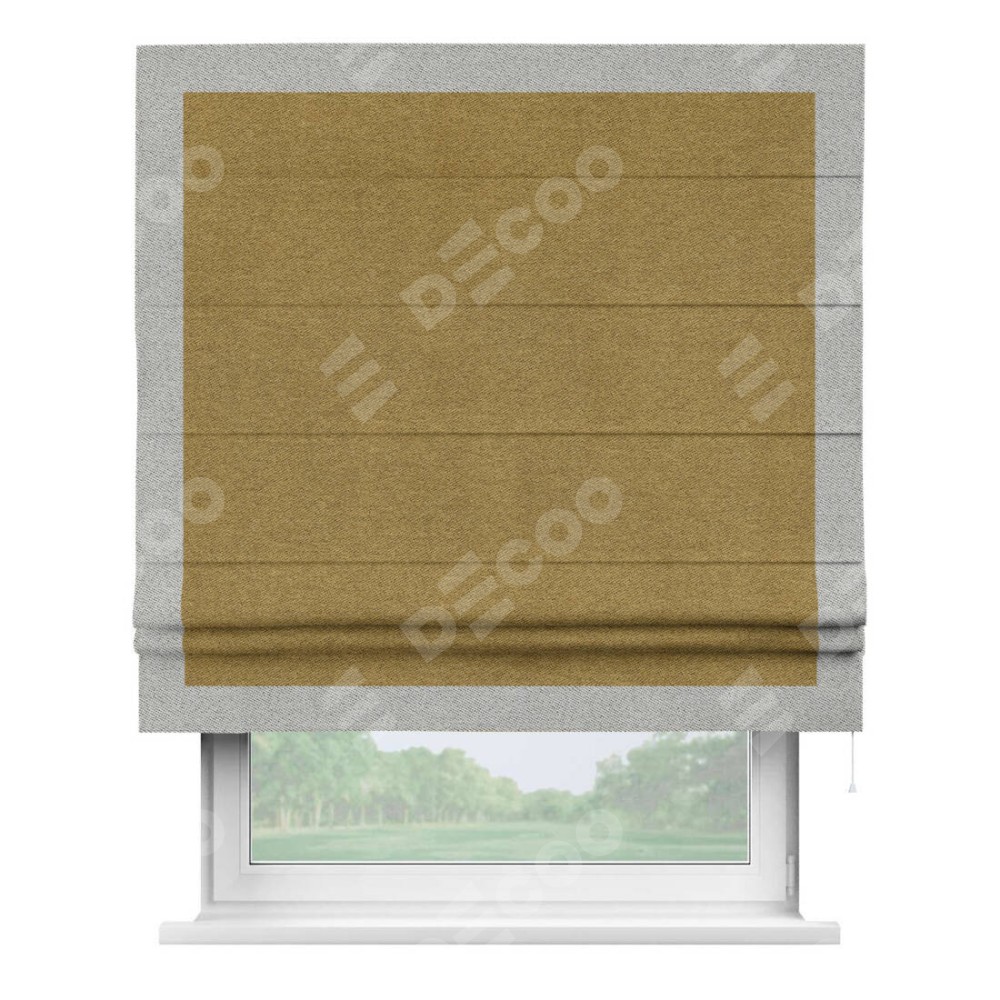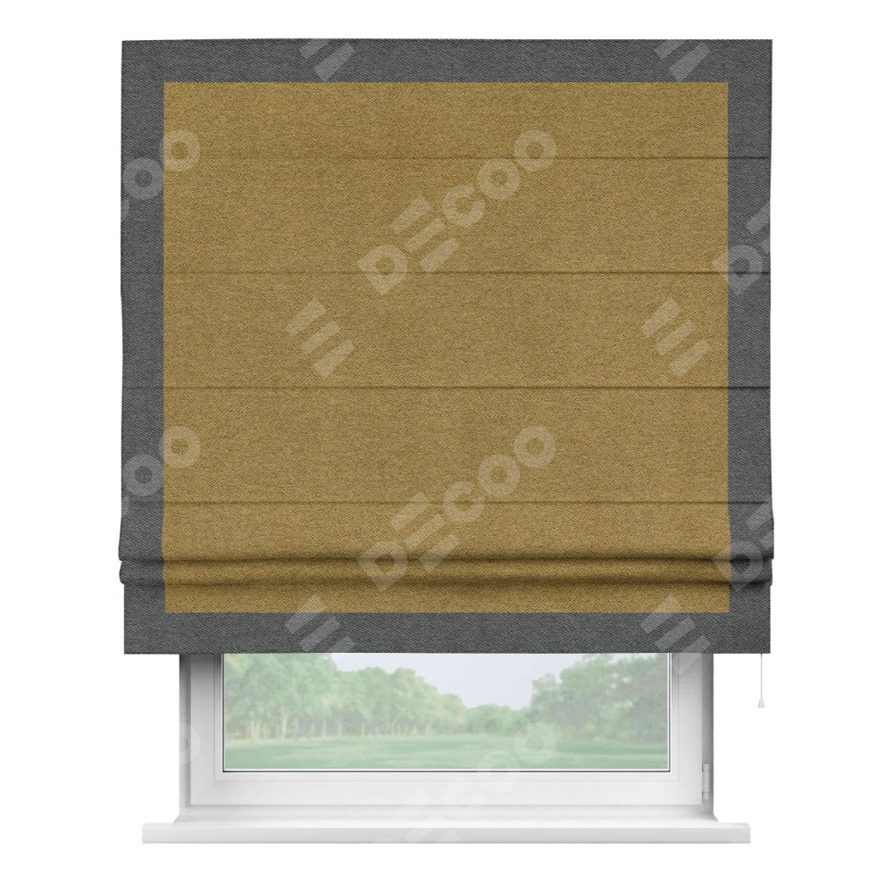 Римская штора «Кортин» с кантом Чесс, для проема, твид блэкаут горчица