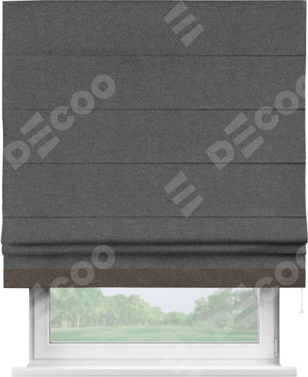 Римская штора «Кортин» для проема, твид блэкаут тёмно-серый, с кантом Джестер