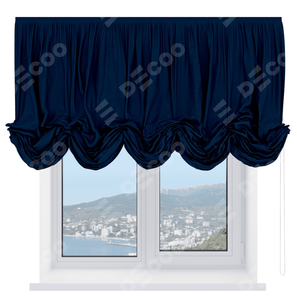Австрийская штора «Кортин», ткань вельвет тёмно-синий