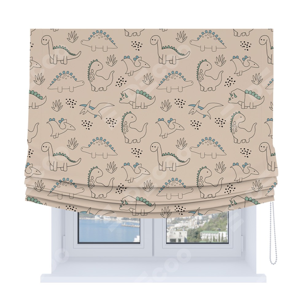 Римская штора Soft с мягкими складками, «Динозаврики»