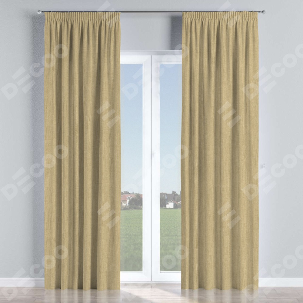 Комплект прямых штор, от производителя «Cortin», пошиты из ткани лён димаут песочный, артикул ткани 16256. С изнаночной стороны в верхней части штор пристрачивается шторная лента с декоративными складками «Карандаш». Для создания элегантных складок прямые шторы шьются по стандарту с коэффициентом 1:2 (на 100 см. ширины проёма 200 см. ширины ткани).