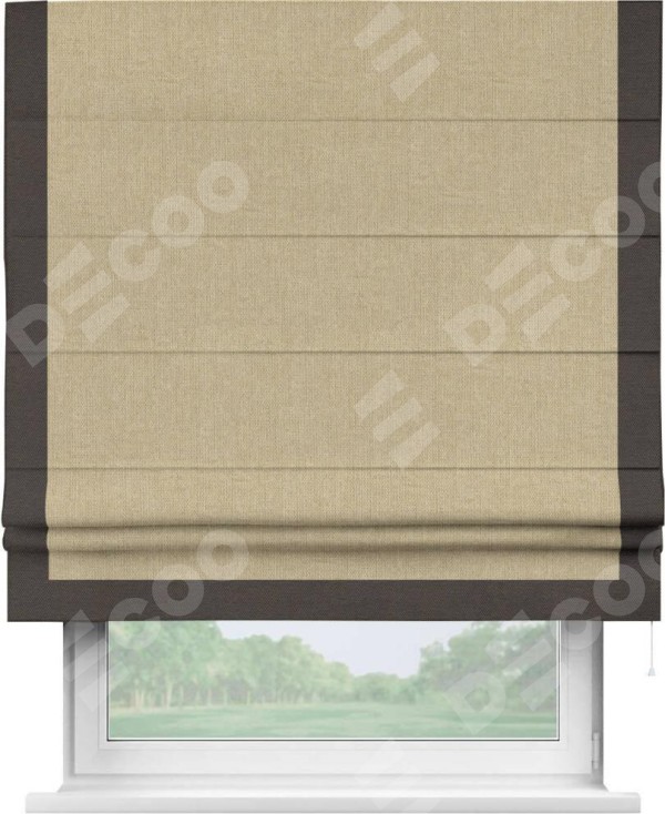 Римская штора «Кортин» для проема, лён димаут песочный с кантом Виктория