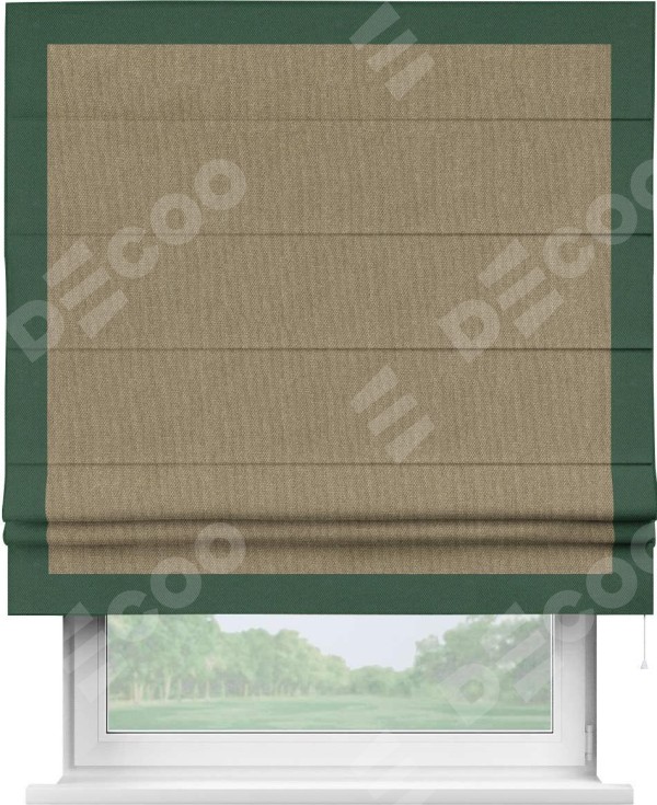 Римская штора «Кортин» для проема, лён димаут тёмно-бежевый с кантом Чесс