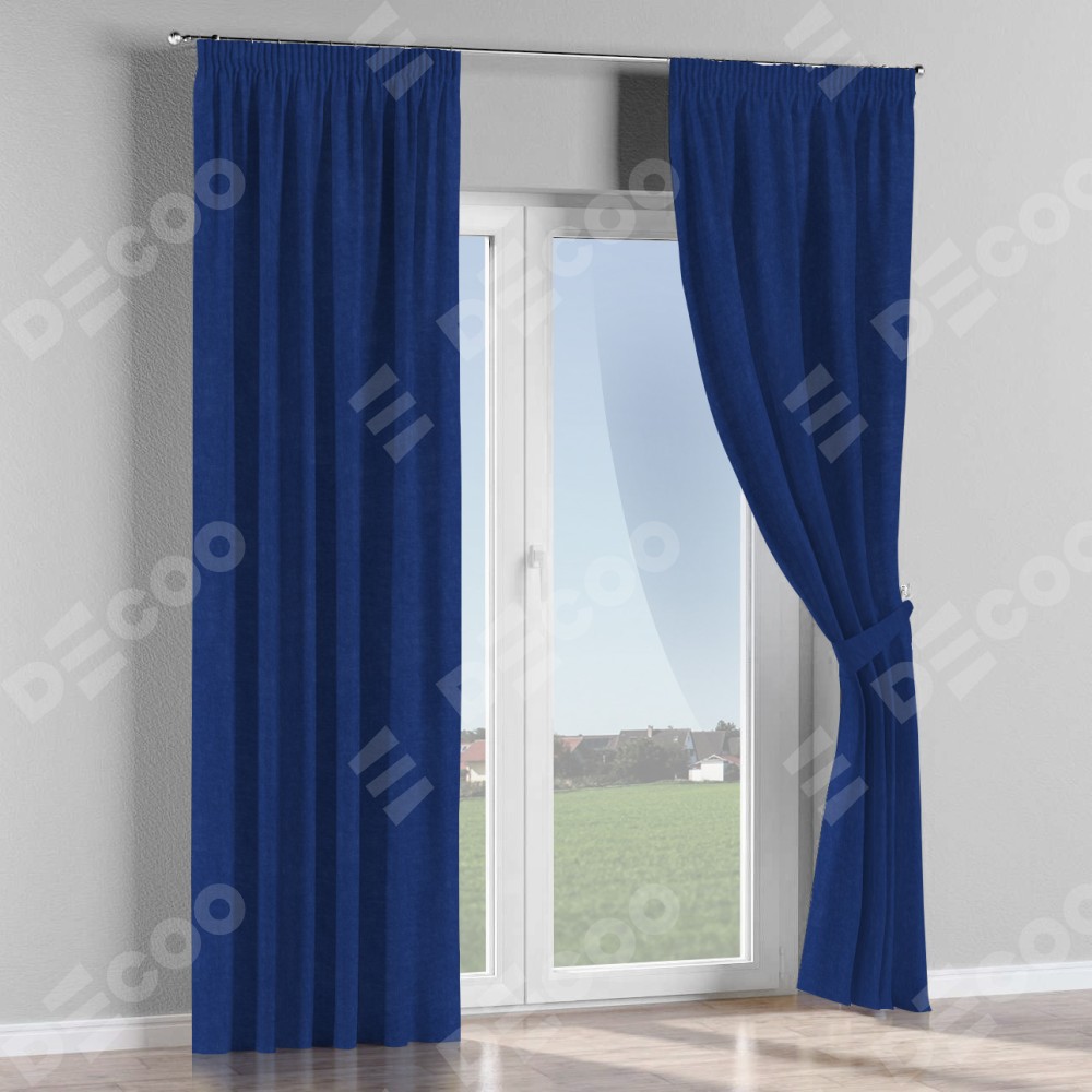 Комплект прямых штор, от производителя «Cortin», пошиты из ткани канвас синий электрик, артикул ткани v-355. С изнаночной стороны в верхней части штор пристрачивается шторная лента с декоративными складками «Карандаш». Для создания элегантных складок прямые шторы шьются по стандарту с коэффициентом 1:2 (на 100 см. ширины проёма 200 см. ширины ткани).