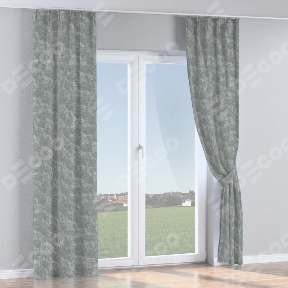 Комплект прямых штор, от производителя «Cortin», пошиты из ткани софт мрамор серый, артикул ткани 93583. С изнаночной стороны в верхней части штор пристрачивается шторная лента с декоративными складками «Кустик». Для создания элегантных складок прямые шторы шьются по стандарту с коэффициентом 1:2 (на 100 см. ширины проёма 200 см. ширины ткани).