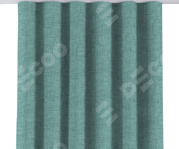 Комплект прямых штор, от производителя «Cortin», пошиты из ткани рогожка димаут аквамариновый крайола, артикул ткани 91023. С изнаночной стороны в верхней части штор пристрачивается шторная лента с декоративными складками «Волна». Для создания элегантных складок прямые шторы шьются по стандарту с коэффициентом 1:2 (на 100 см. ширины проёма 200 см. ширины ткани).