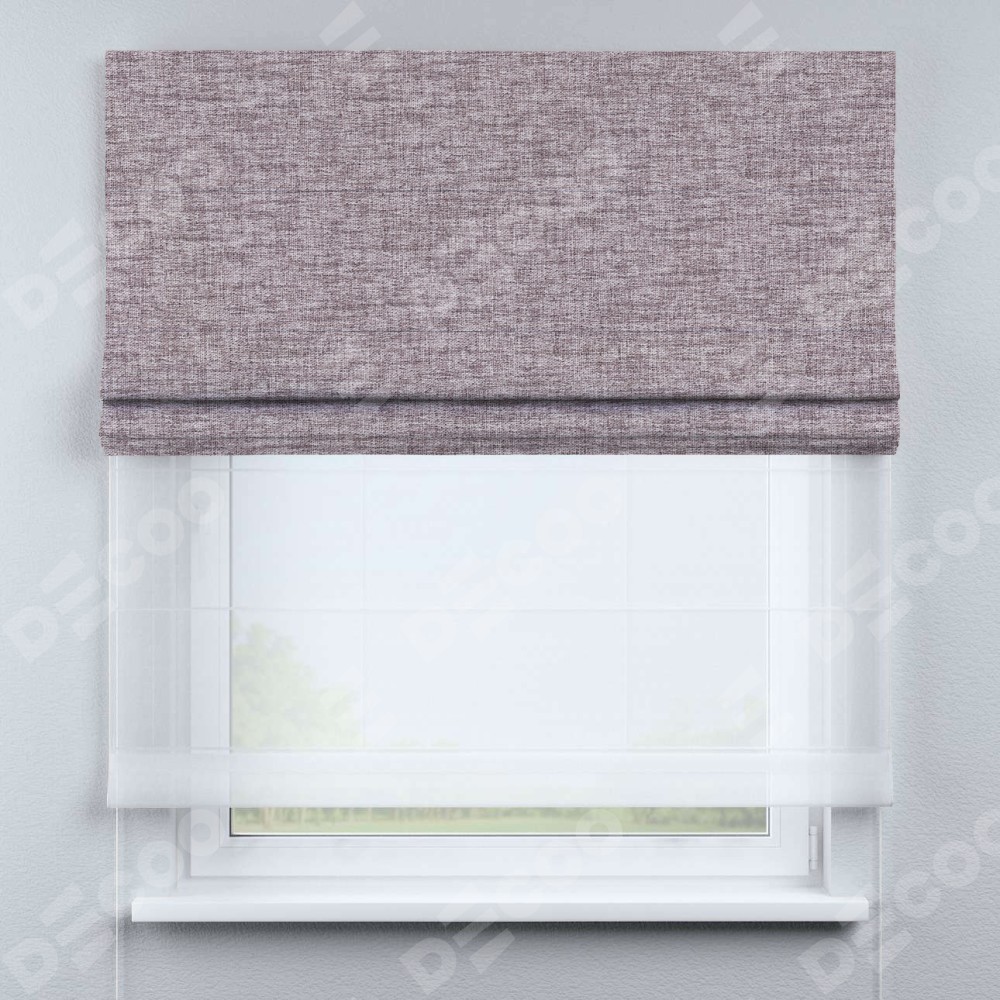 Двойная римская штора «День-ночь» от производителя Cortin предназначена для использования в проёмах. Эта штора уникальна тем, что состоит из двух полотен. На лицевой стороне находится рогожка димаут розовый кварц (артикул: 91030), обеспечивающий эффективное затемнение. В комплект также входит вторая ткань — легкий белый тюль (артикул: V-01), который добавляет изящества и легкости оформлению окна. Кроме того, доступны и другие разновидности ткани тюль, выбор которых доступен по  ссылке .