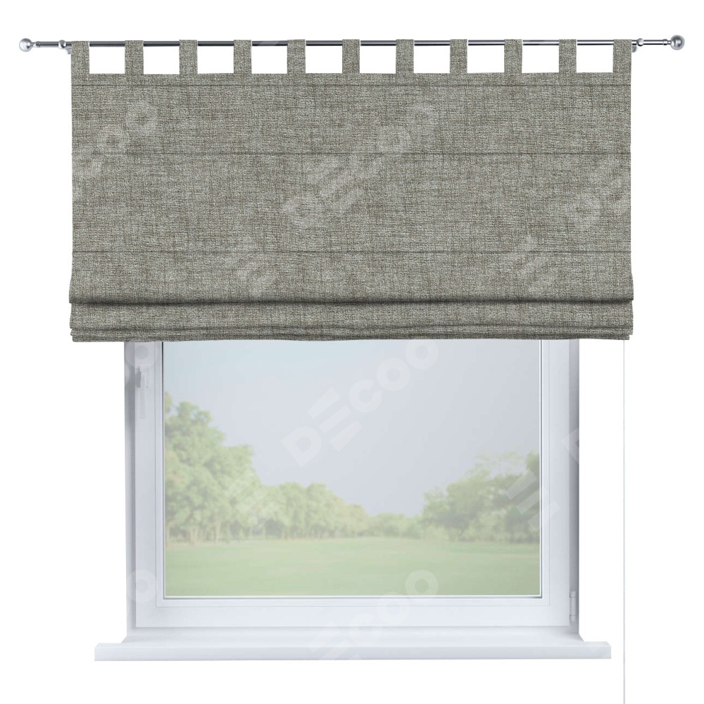 Римская штора производителя «Cortin», используется для проёма, пошита из ткани рогожка димаут серый дуб, артикул ткани 91028. Данная модель пошита на петлях, комплектуется на выбор круглым карнизом и подходит для монтажа на стену. Римская штора на петлях имеет простую систему регулировки высоты, отличительным преимуществом данной модели является простой способ монтажа. Достаточно повесить ее на трубу и штора готова!