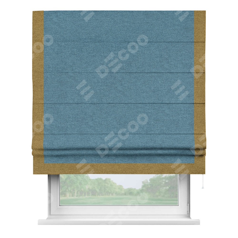 Римская штора «Кортин» с кантом Виктория, для проема, ткань твид блэкаут, светло-синий