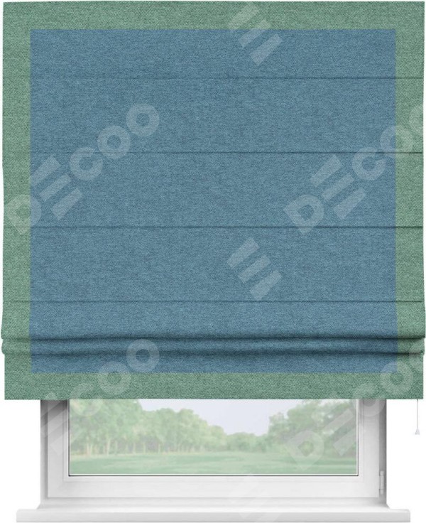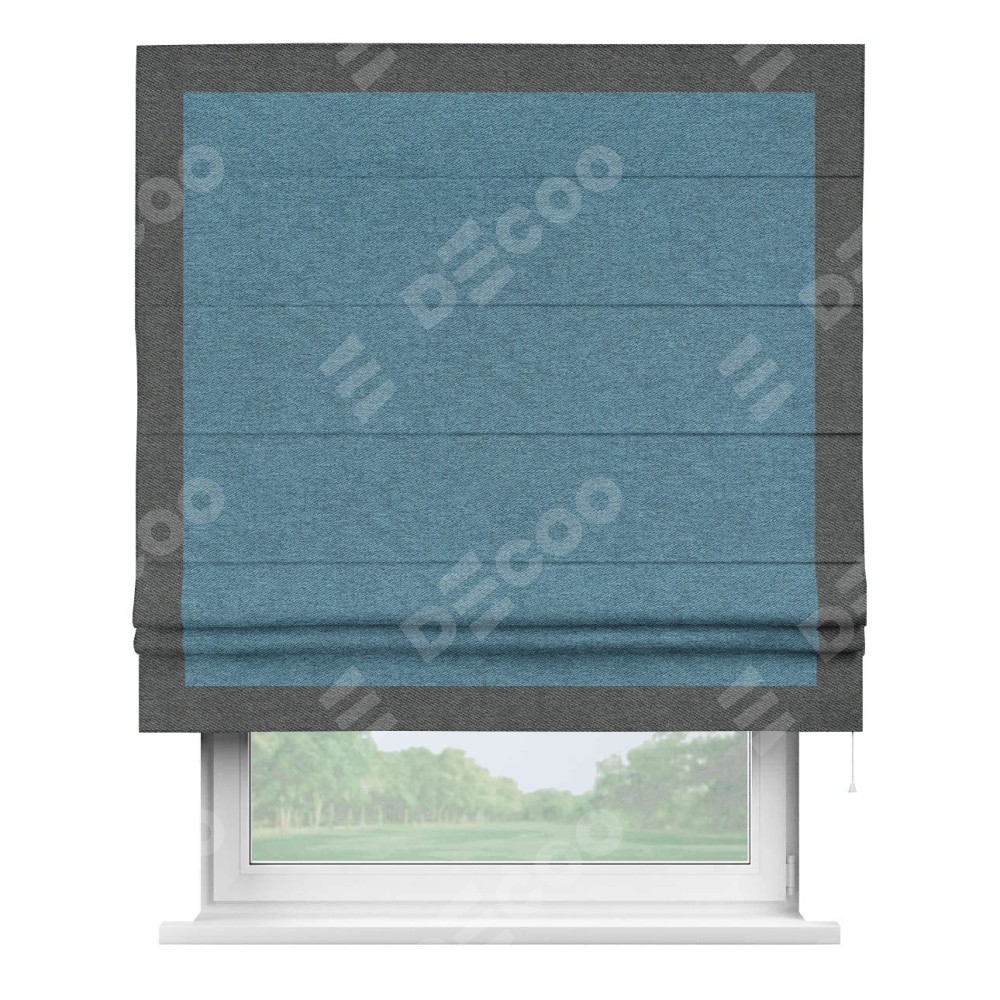 Римская штора «Кортин» с кантом Чесс, для проема, ткань твид блэкаут, светло-синий