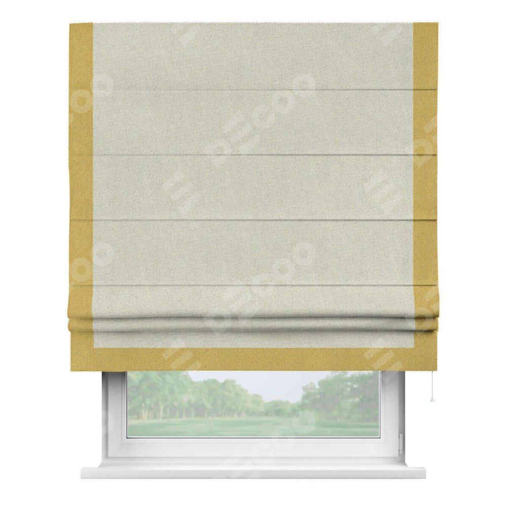 Римская штора с отделкой кантом «Виктория», пошита из ткани твид блэкаут шампань, артикул: 90929. представляет собой элегантное решение для оконного оформления. Кант по бокам и снизу шторы добавляет изысканности и аккуратности внешнему виду, подчеркивая линии и форму шторы. Этот элемент декора не только украшает, но и выполняет практическую функцию, защищая края ткани от износа. Кант может быть выполнен в контрастном или гармонирующем цвете, что позволяет добиться различных стилевых эффектов и легко вписать штору в интерьер комнаты.
