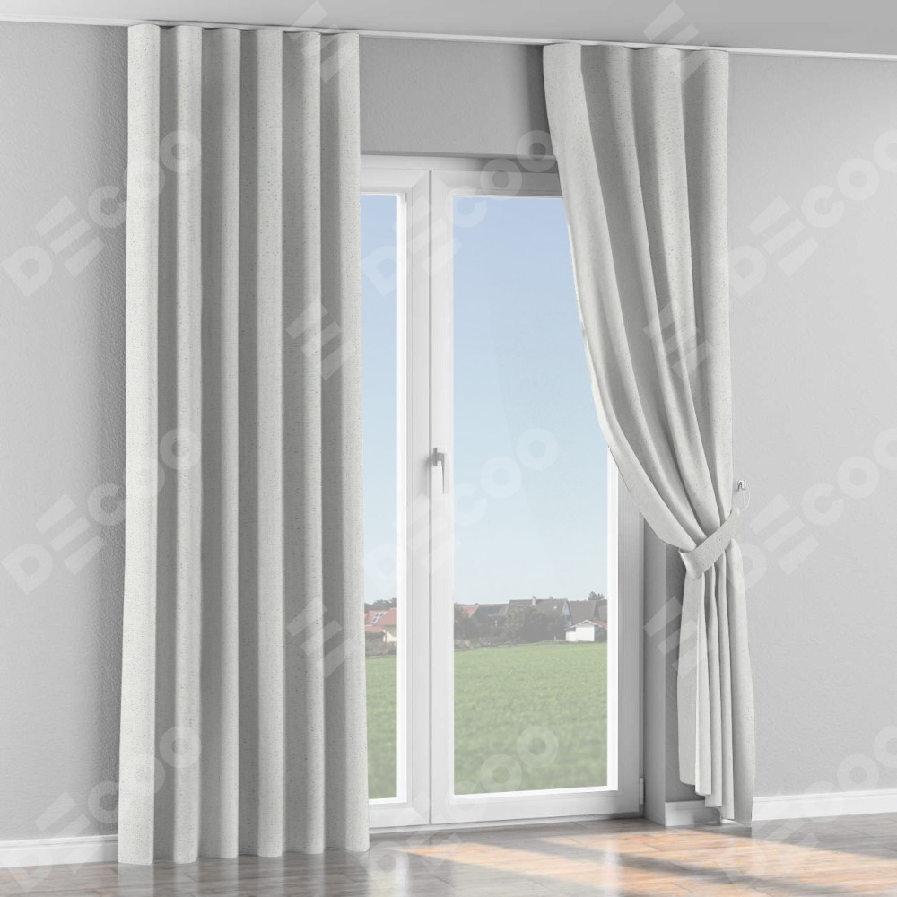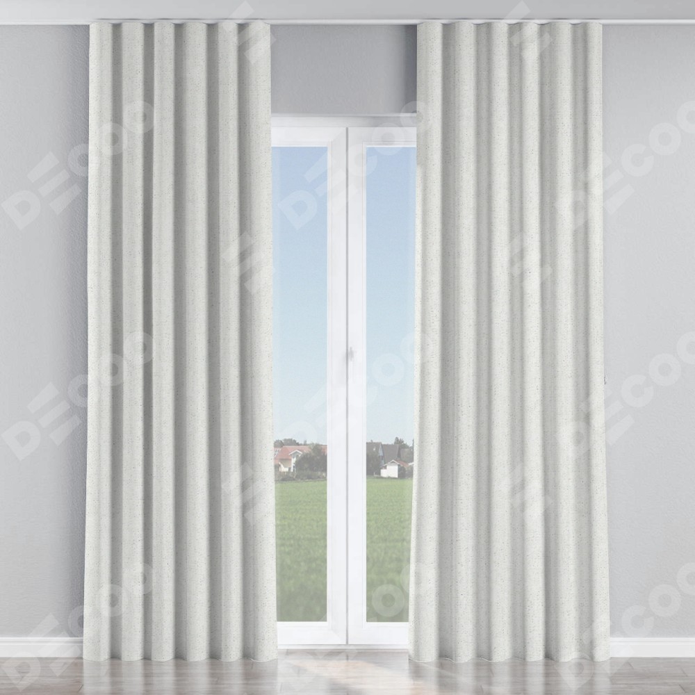 Комплект прямых штор, от производителя «Cortin», пошиты из ткани лён шампань, артикул ткани 91399. С изнаночной стороны в верхней части штор пристрачивается шторная лента с декоративными складками «Волна». Для создания элегантных складок прямые шторы шьются по стандарту с коэффициентом 1:2 (на 100 см. ширины проёма 200 см. ширины ткани).
