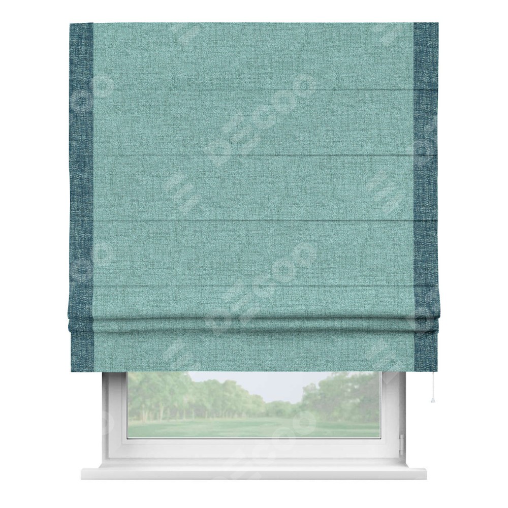 Римская штора «Кортин» для проёма, рогожка димаут аквамариновый крайола, с кантом Стрим Дуо