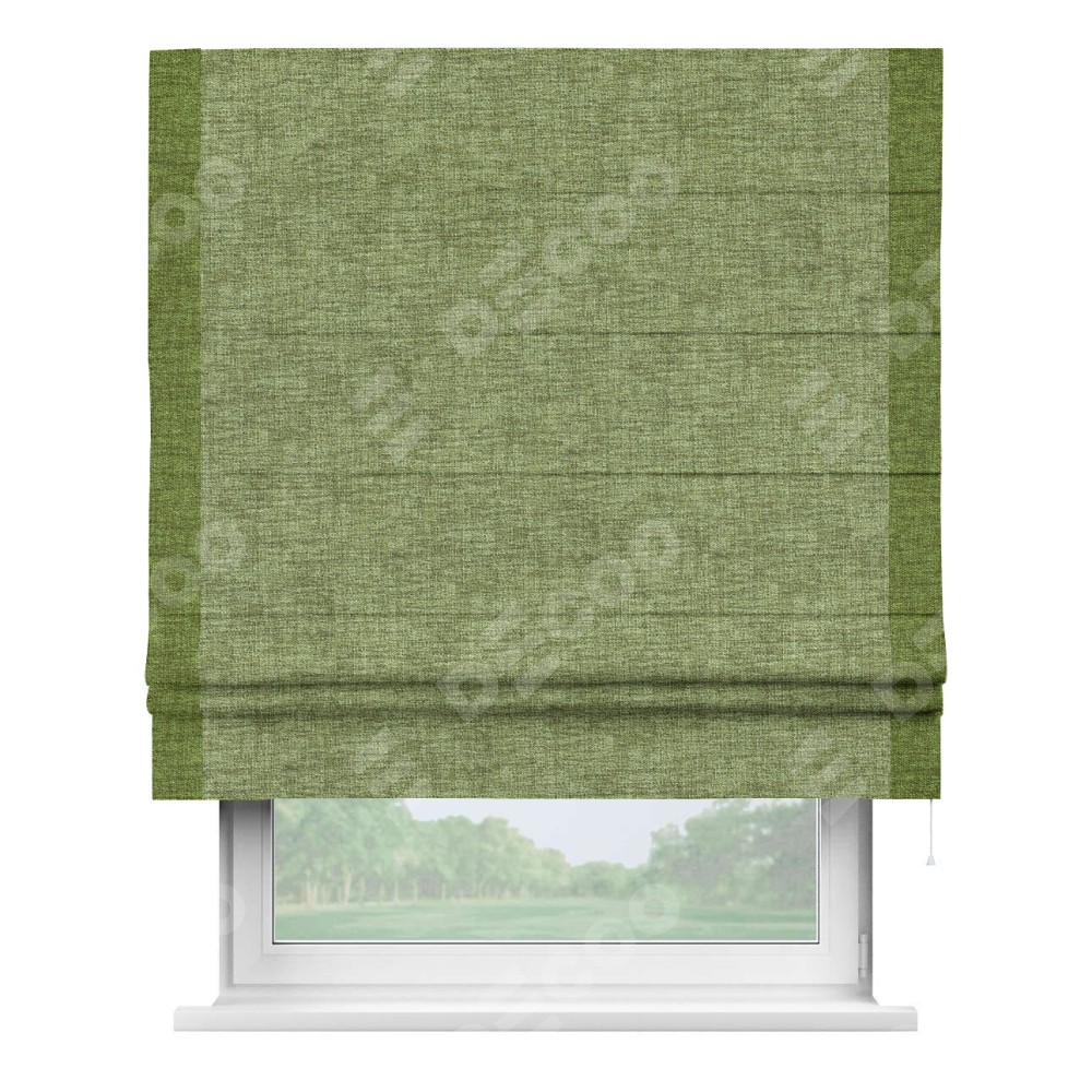 Римская штора «Кортин» для проёма, рогожка димаут травяной, с кантом Стрим Дуо