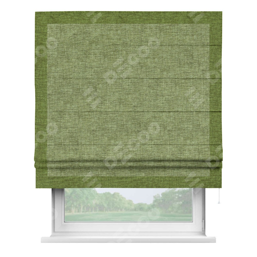 Римская штора «Кортин» для проёма, рогожка димаут травяной, с кантом Чесс