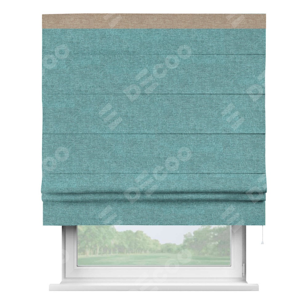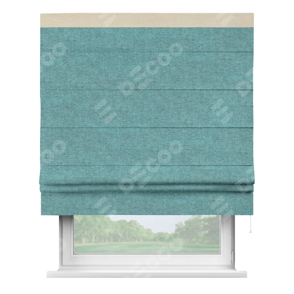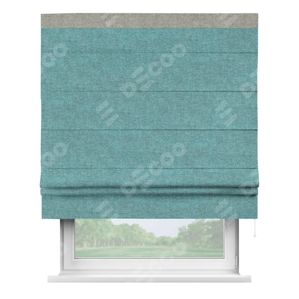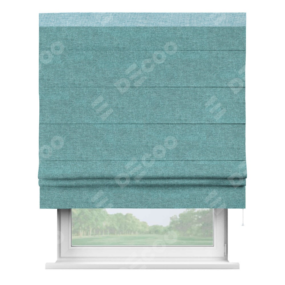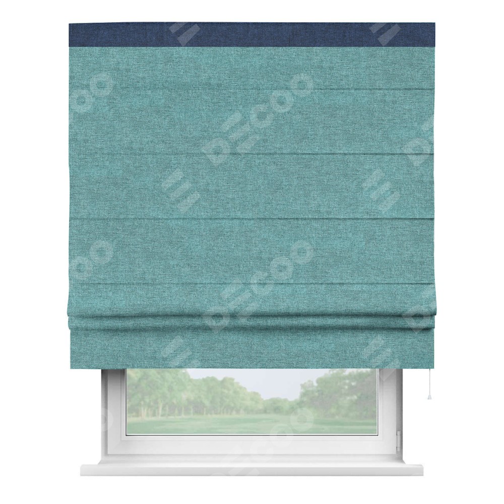 Римская штора «Кортин» с кантом Кинг, для проема, ткань лён кашемир бирюзовый