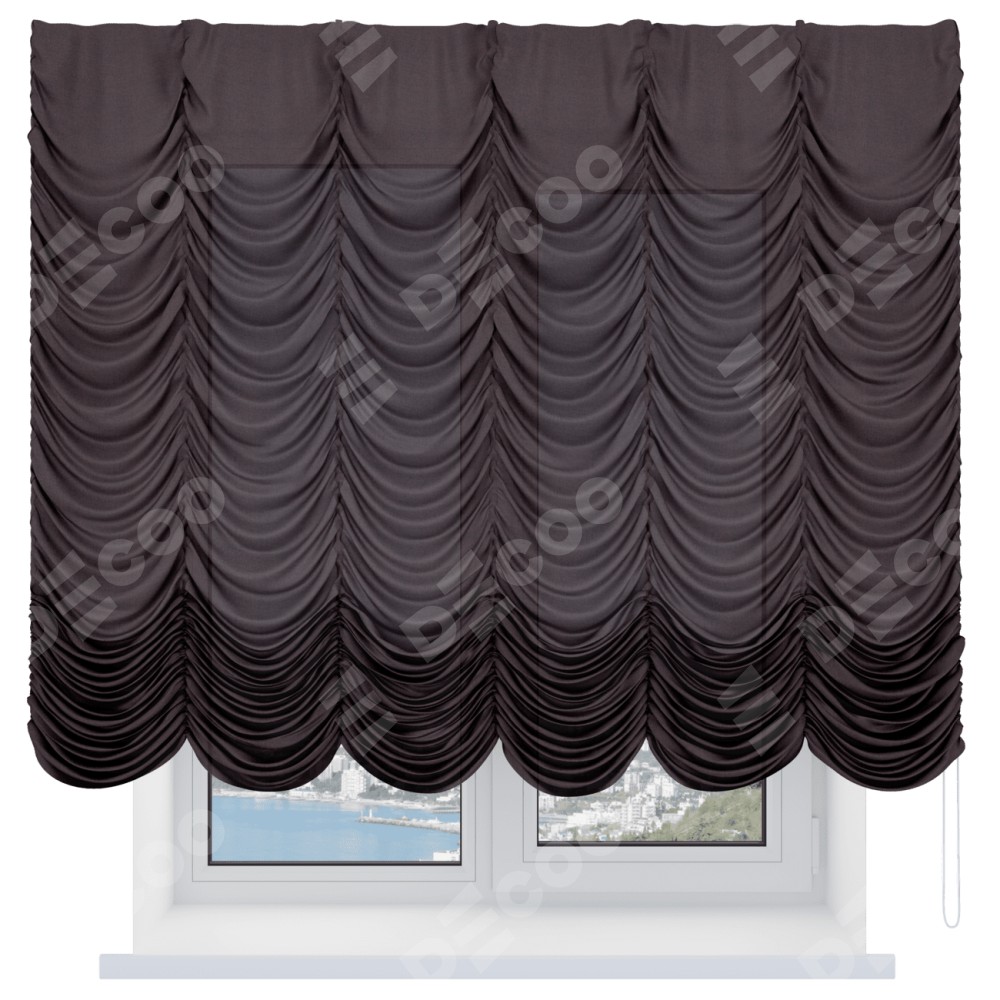 Французская штора производителя «Cortin», используется для проёма, пошита из ткани лён коричневый, артикул ткани 53443. Имеет универсальный механизм и подходит для монтажа: на потолок и на стену.