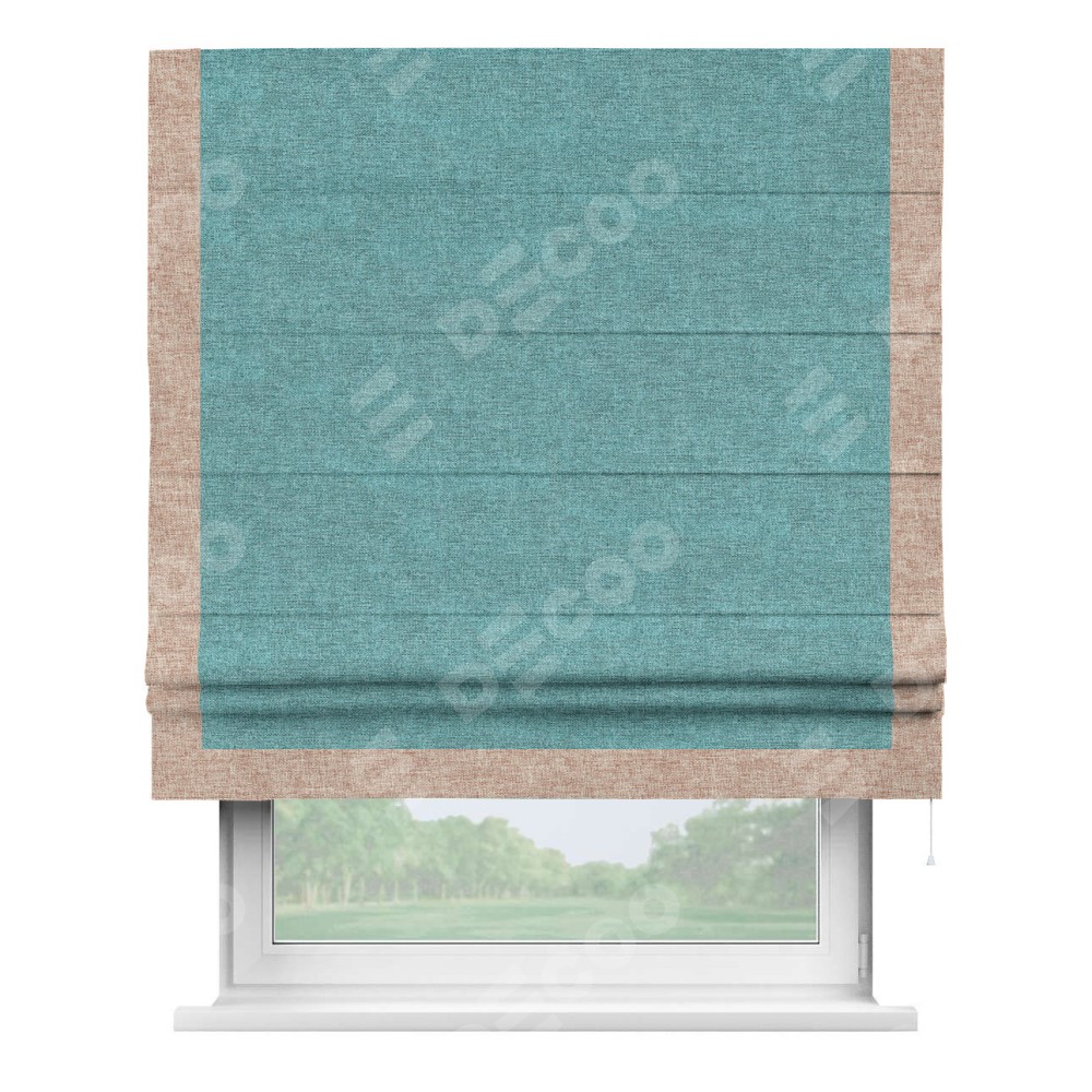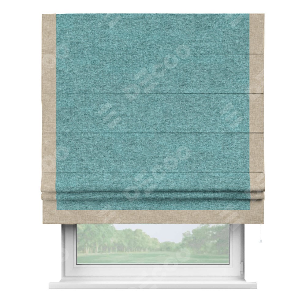 Римская штора с отделкой кантом «Виктория», пошита из ткани лён кашемир бирюзовый, артикул: 17214. представляет собой элегантное решение для оконного оформления. Кант по бокам и снизу шторы добавляет изысканности и аккуратности внешнему виду, подчеркивая линии и форму шторы. Этот элемент декора не только украшает, но и выполняет практическую функцию, защищая края ткани от износа. Кант может быть выполнен в контрастном или гармонирующем цвете, что позволяет добиться различных стилевых эффектов и легко вписать штору в интерьер комнаты.