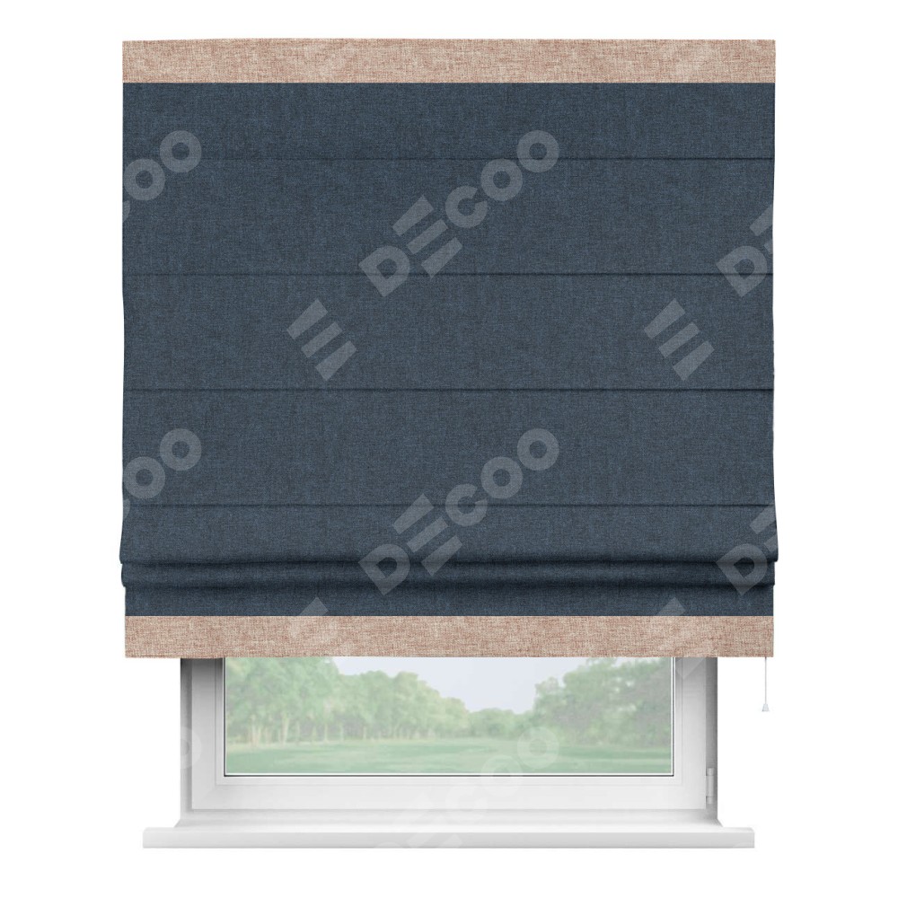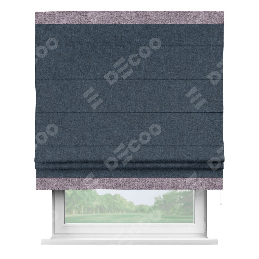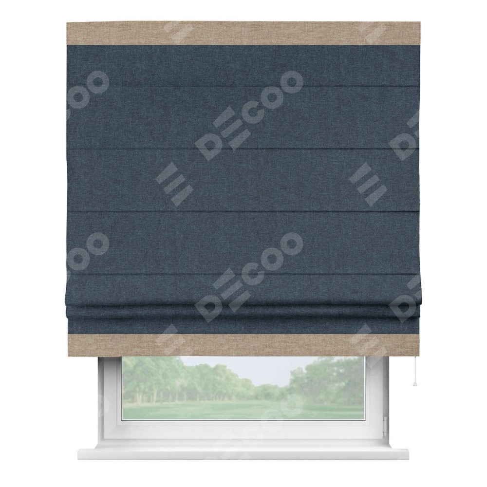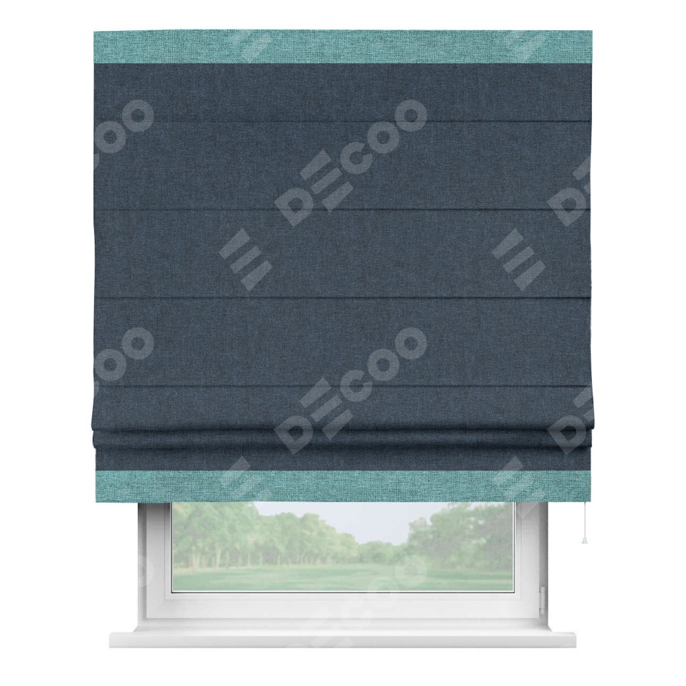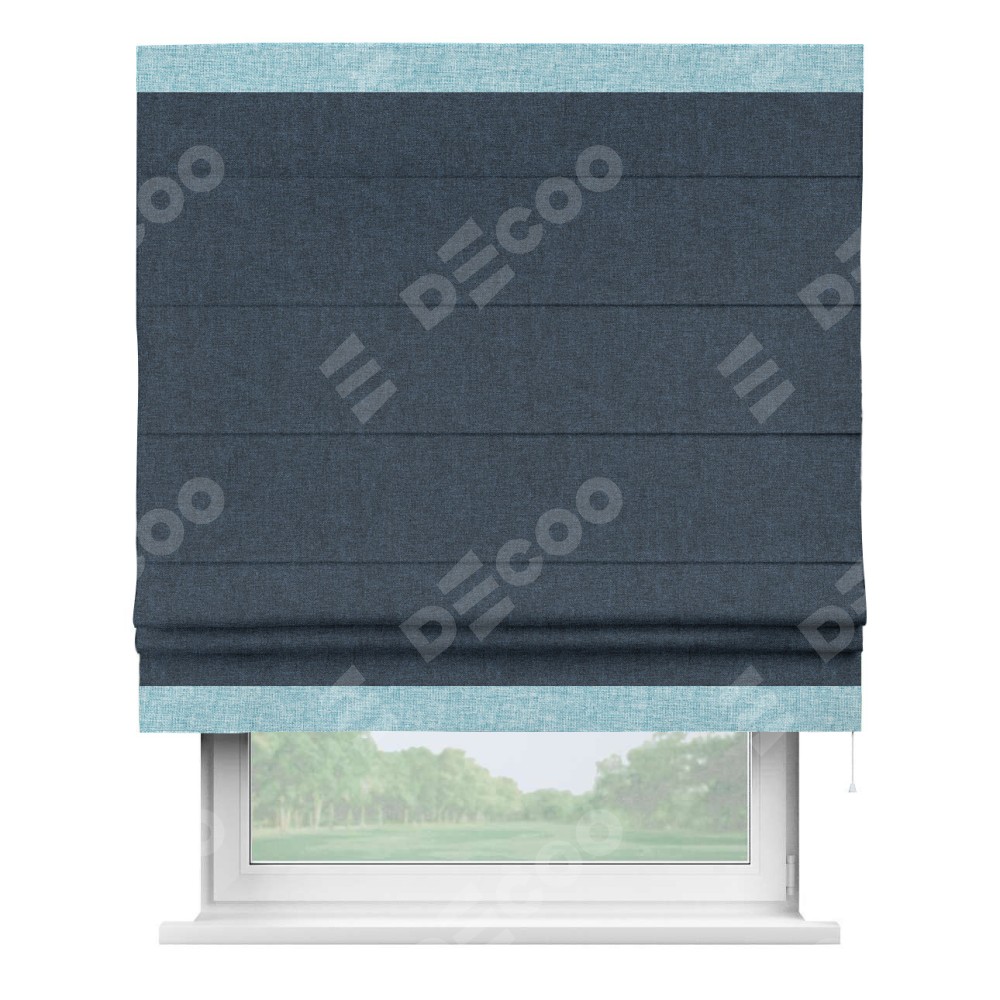 Римская штора «Кортин» для проёма, лён кашемир синий, с кантом Горизонт