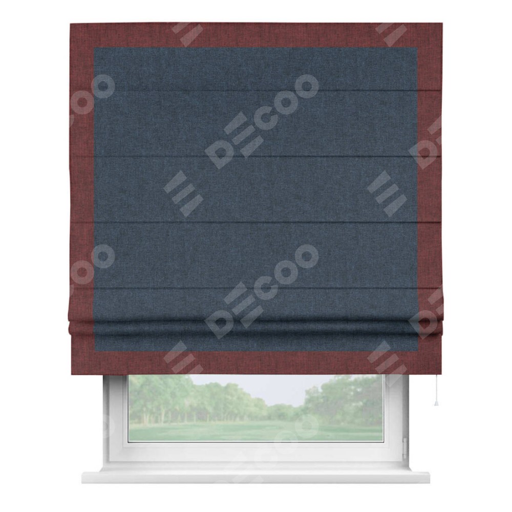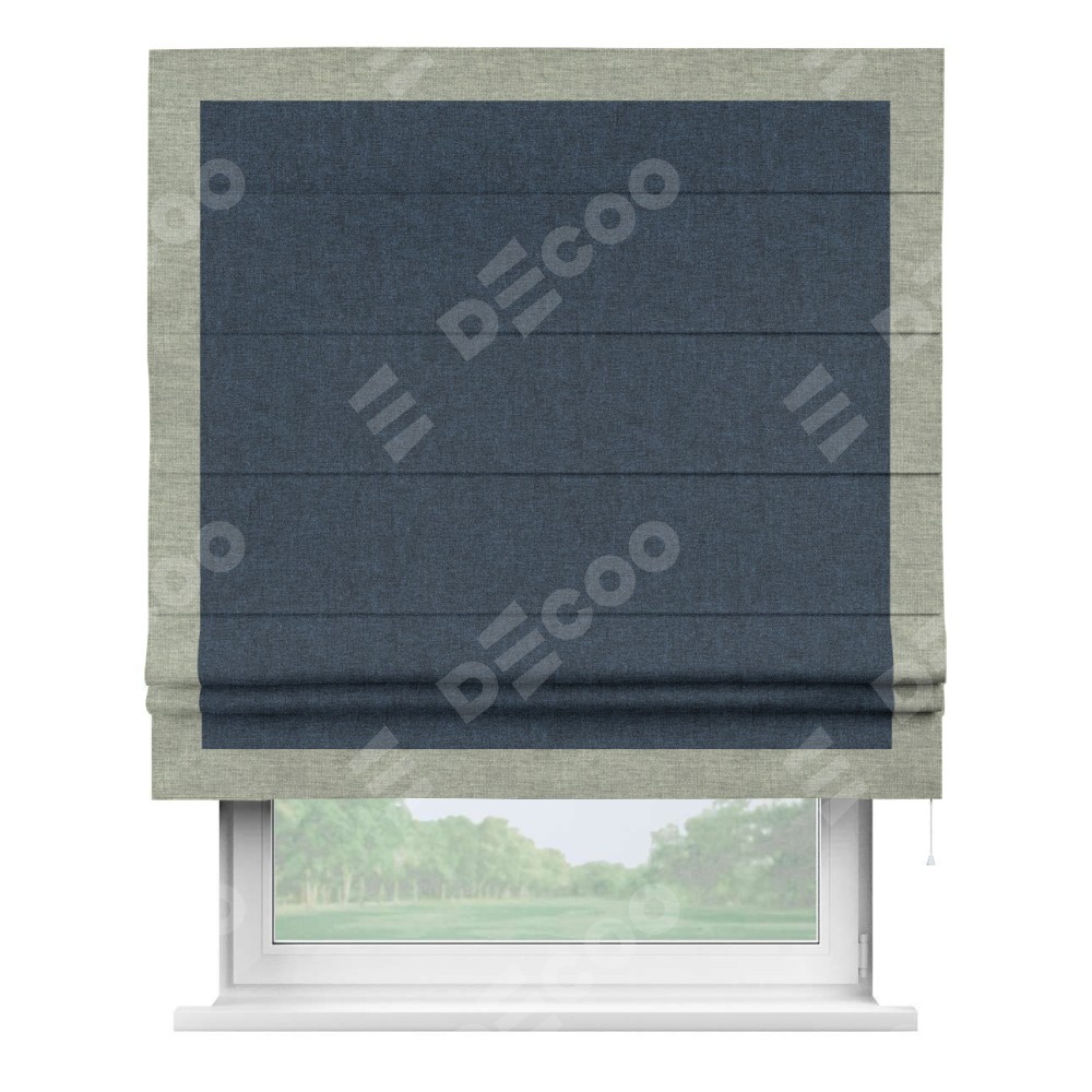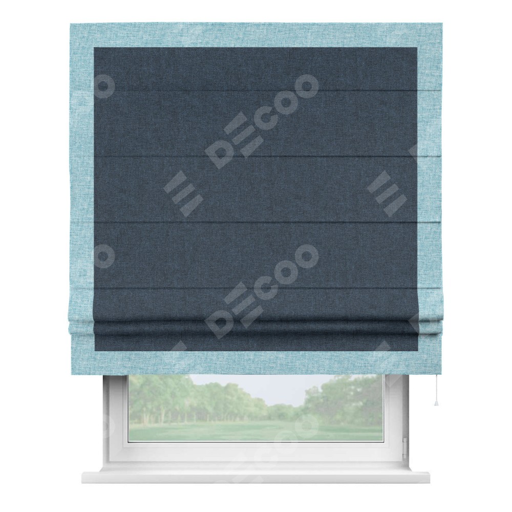 Римская штора «Кортин» для проёма, лён кашемир синий, с кантом Чесс
