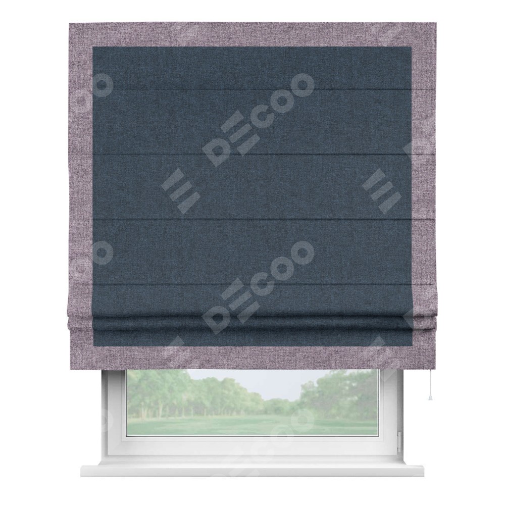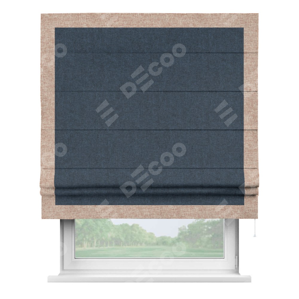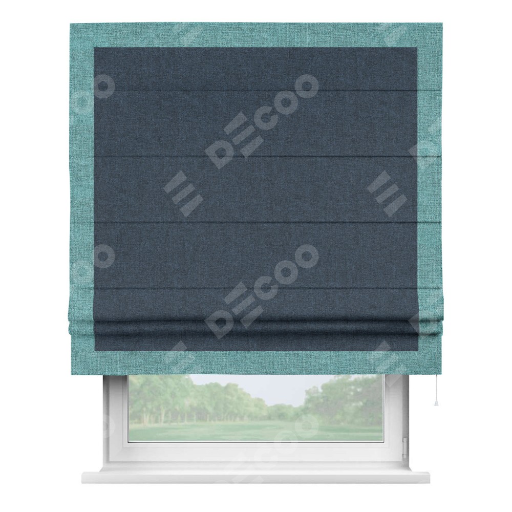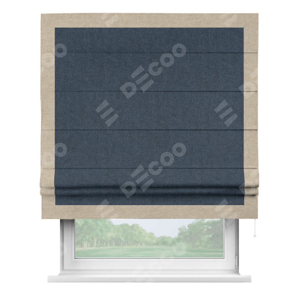 Римская штора «Кортин» для проёма, лён кашемир синий, с кантом Чесс