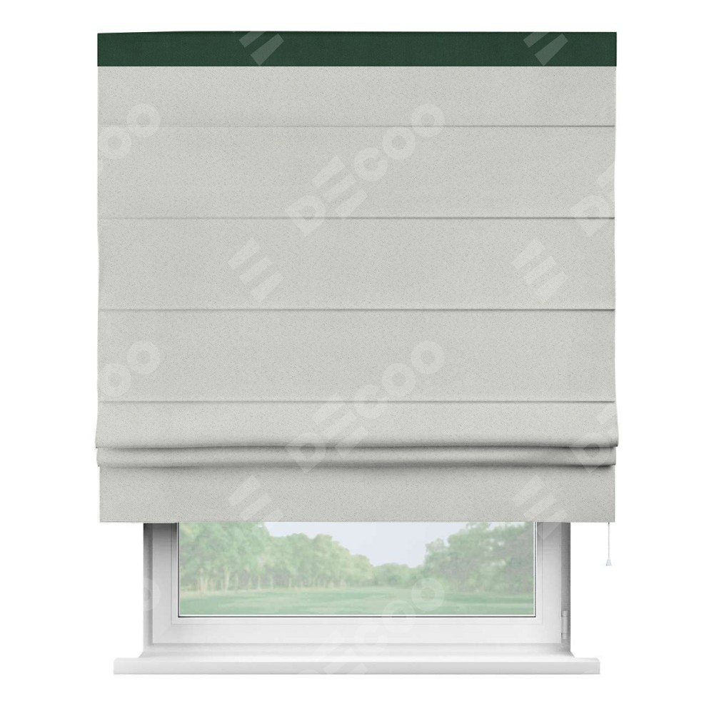 Римская штора пошита из ткани однотонный блэкаут милк, артикул: 23, с отделкой кантом «Кинг» отличается своей необычной особенностью: кант располагается исключительно сверху шторы. Такой дизайн делает акцент на верхней части окна, визуально поднимая потолок и придавая интерьеру более возвышенный и изысканный вид. Отделка кантом на верхней кромке не только украшает штору, но и может служить дополнительной защитой от износа в месте наибольшего контакта с механизмом управления шторой.