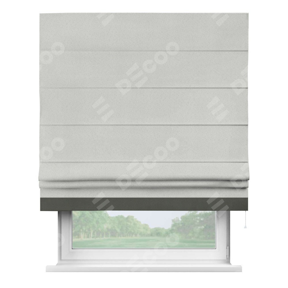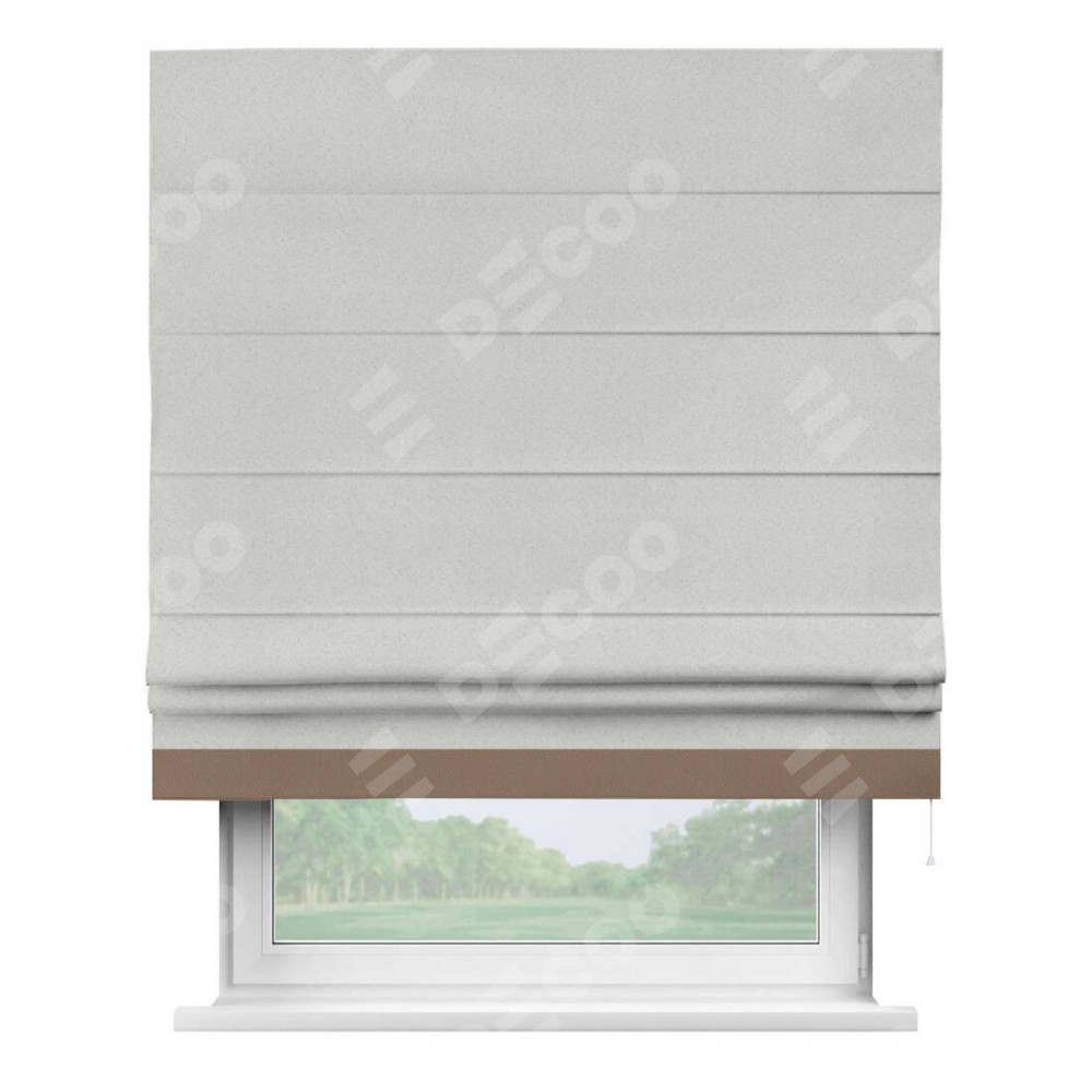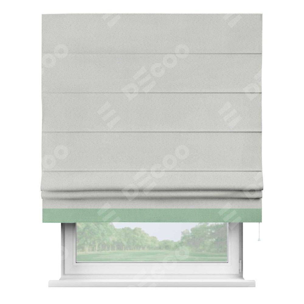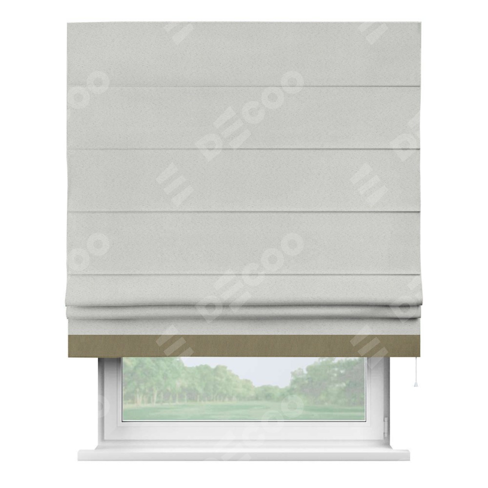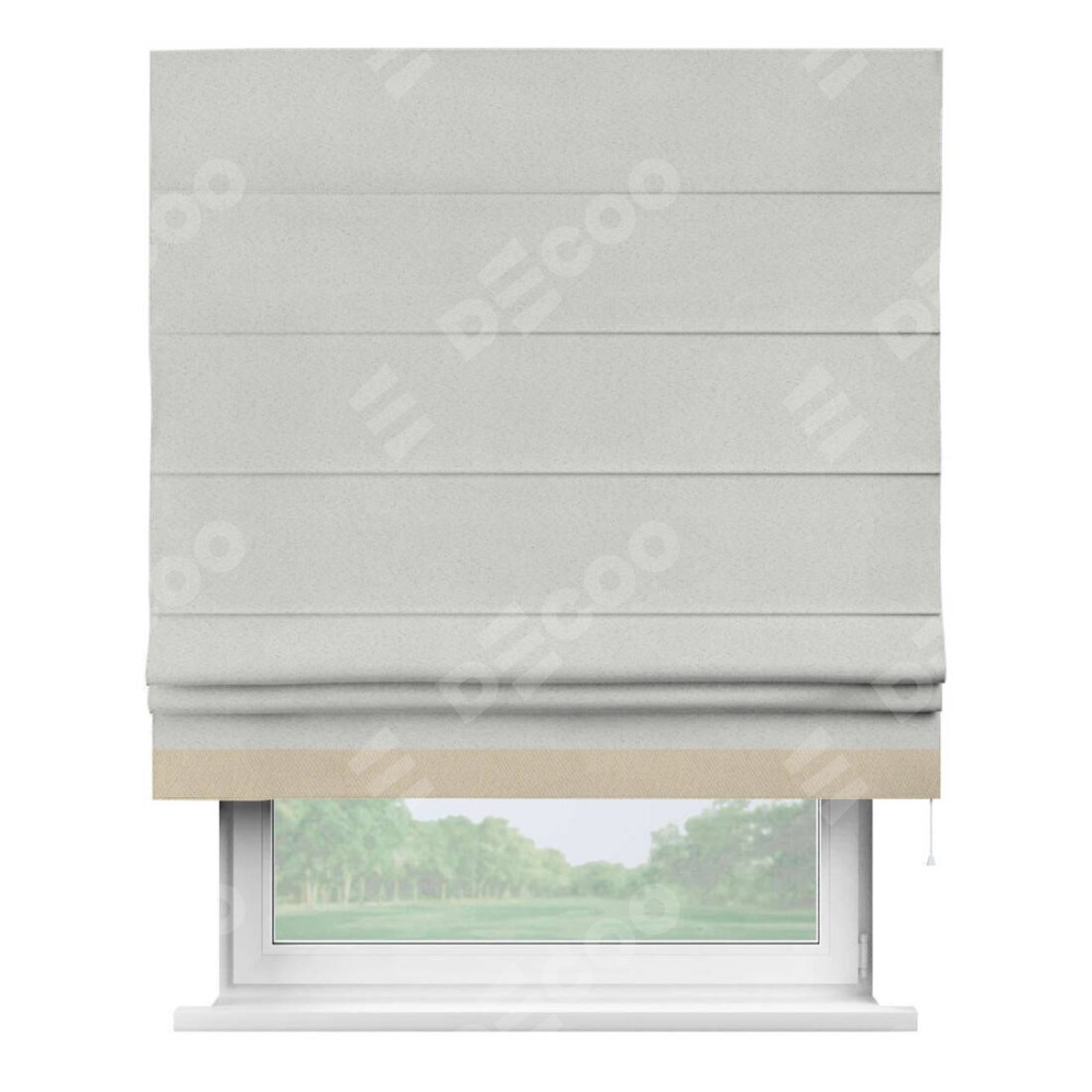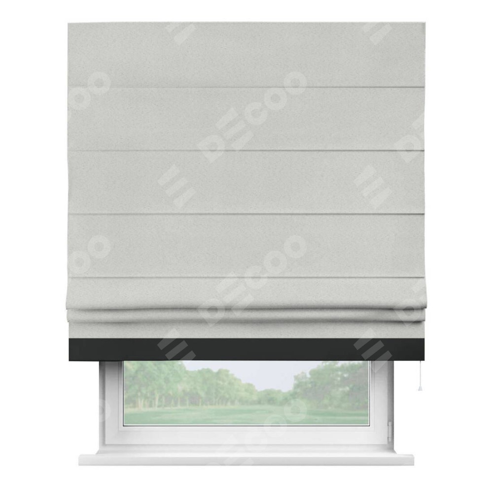 Римская штора пошита из ткани однотонный блэкаут милк, артикул: 23, с отделкой кантом «Джестер» выделяется своей уникальной особенностью — кантом, расположенным только снизу шторы. Этот дизайн добавляет оригинальности и игривости оконному оформлению, делая акцент на нижней части шторы и создавая интересный визуальный эффект. Отделка кантом на нижнем крае не только служит эстетической функции, но и способствует увеличению прочности и износостойкости ткани в этом месте.