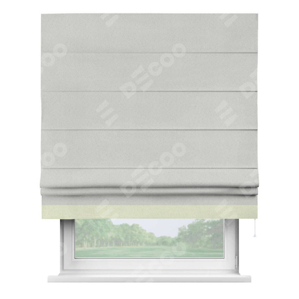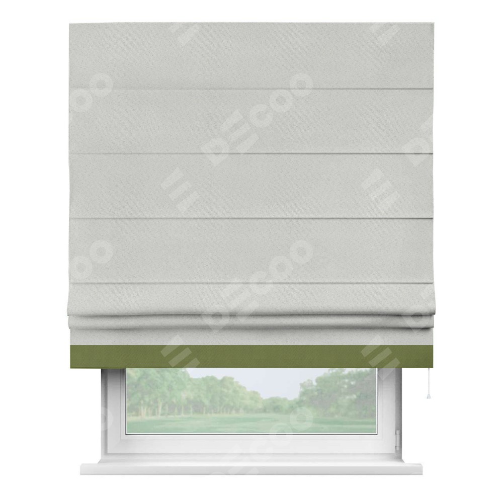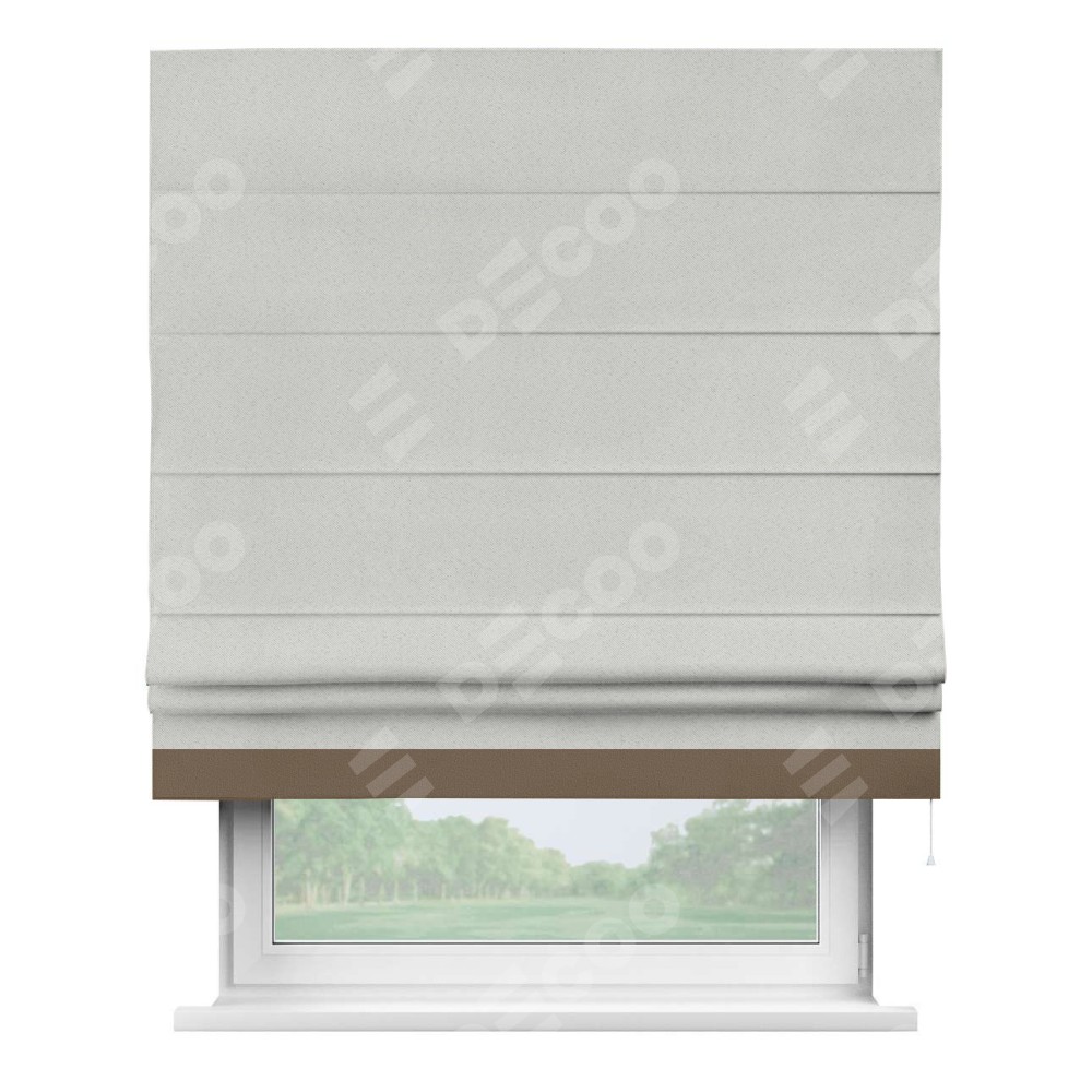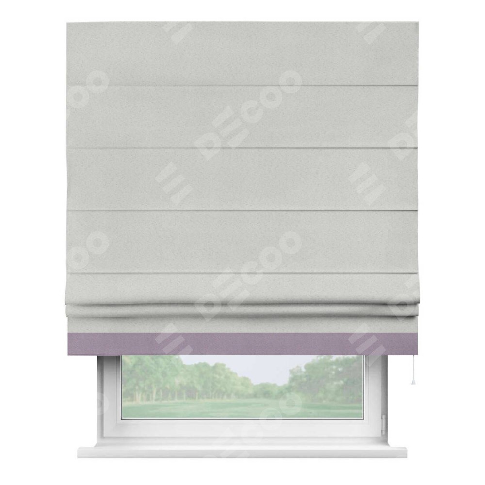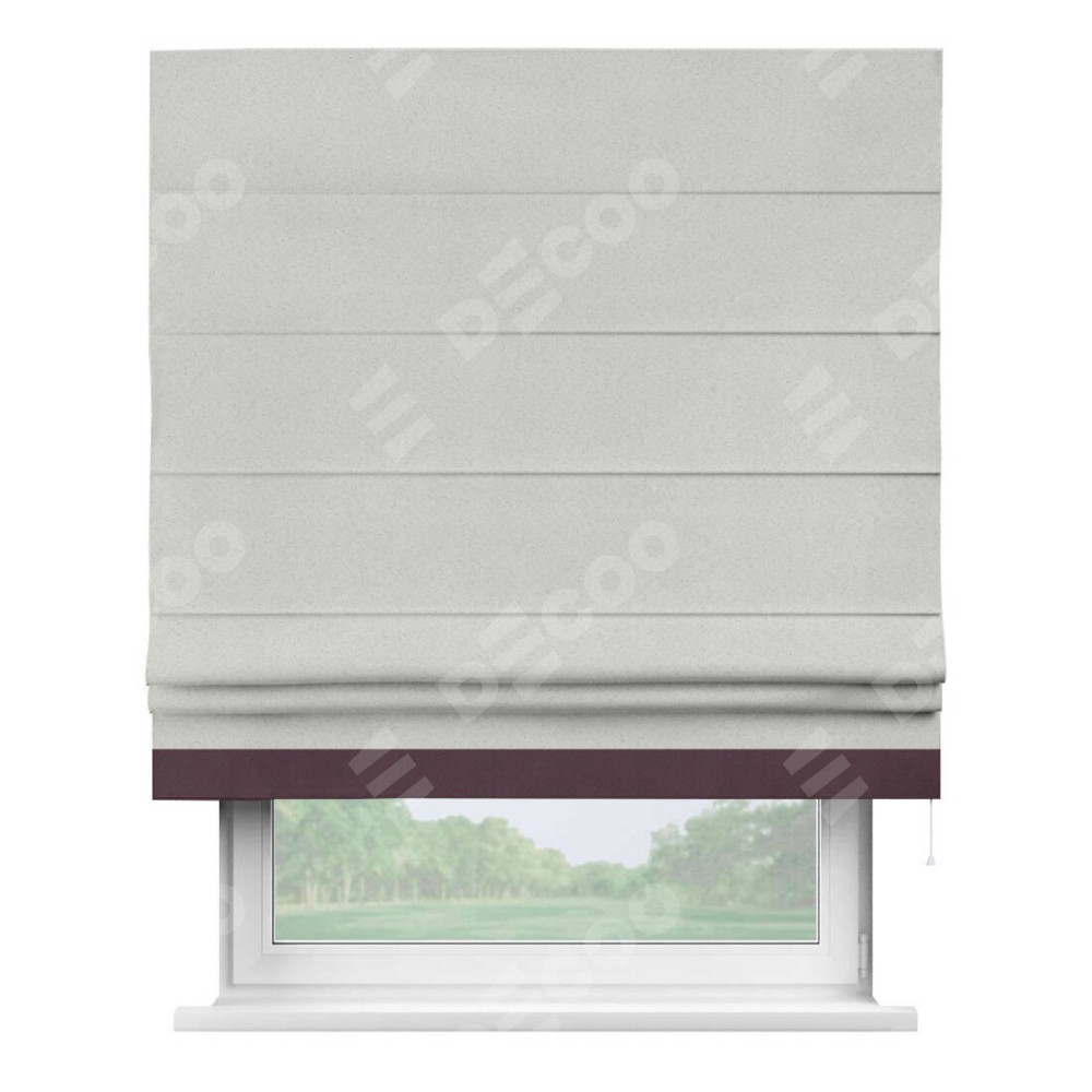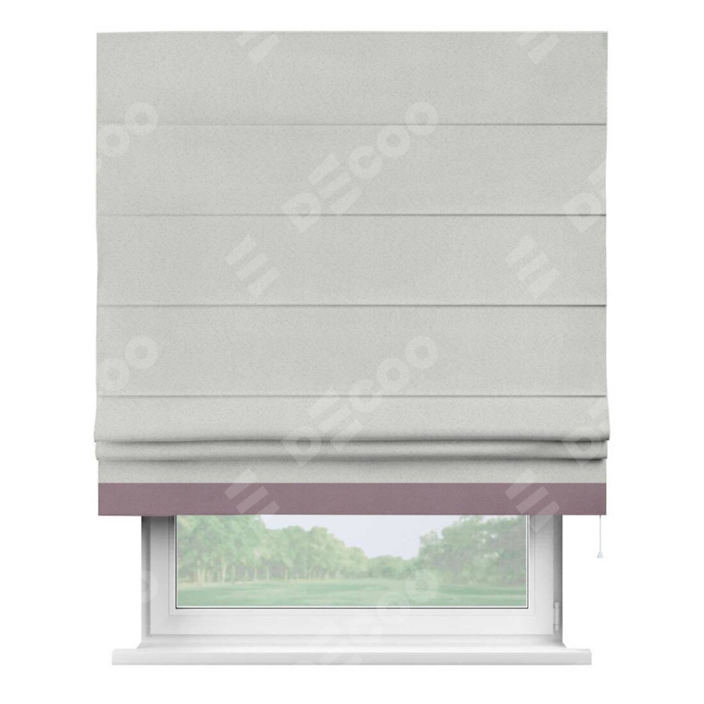 Римская штора пошита из ткани однотонный блэкаут милк, артикул: 23, с отделкой кантом «Джестер» выделяется своей уникальной особенностью — кантом, расположенным только снизу шторы. Этот дизайн добавляет оригинальности и игривости оконному оформлению, делая акцент на нижней части шторы и создавая интересный визуальный эффект. Отделка кантом на нижнем крае не только служит эстетической функции, но и способствует увеличению прочности и износостойкости ткани в этом месте.
