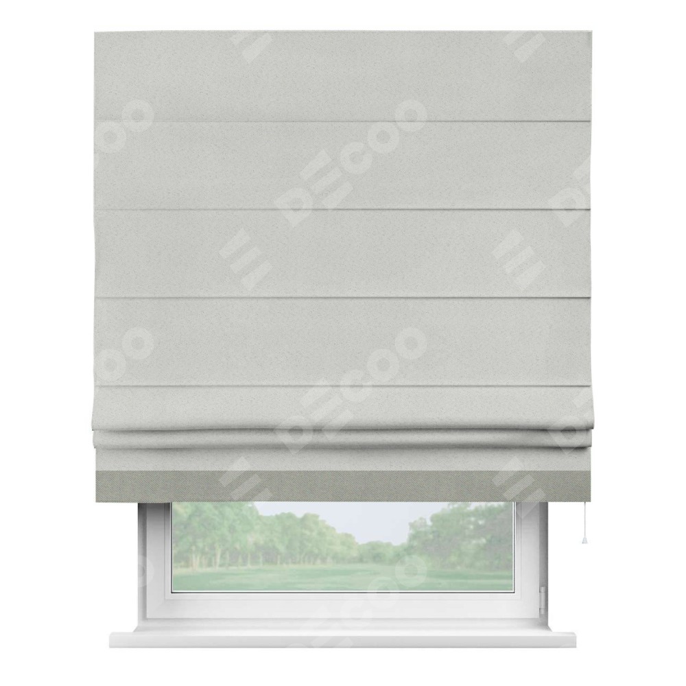 Классическая римская штора представляет собой полотно прикрепленное к карнизу, с обратной стороны полотна вшиты планки. С их помощь при сборе шторы образуются красивые горизонтальные складки.