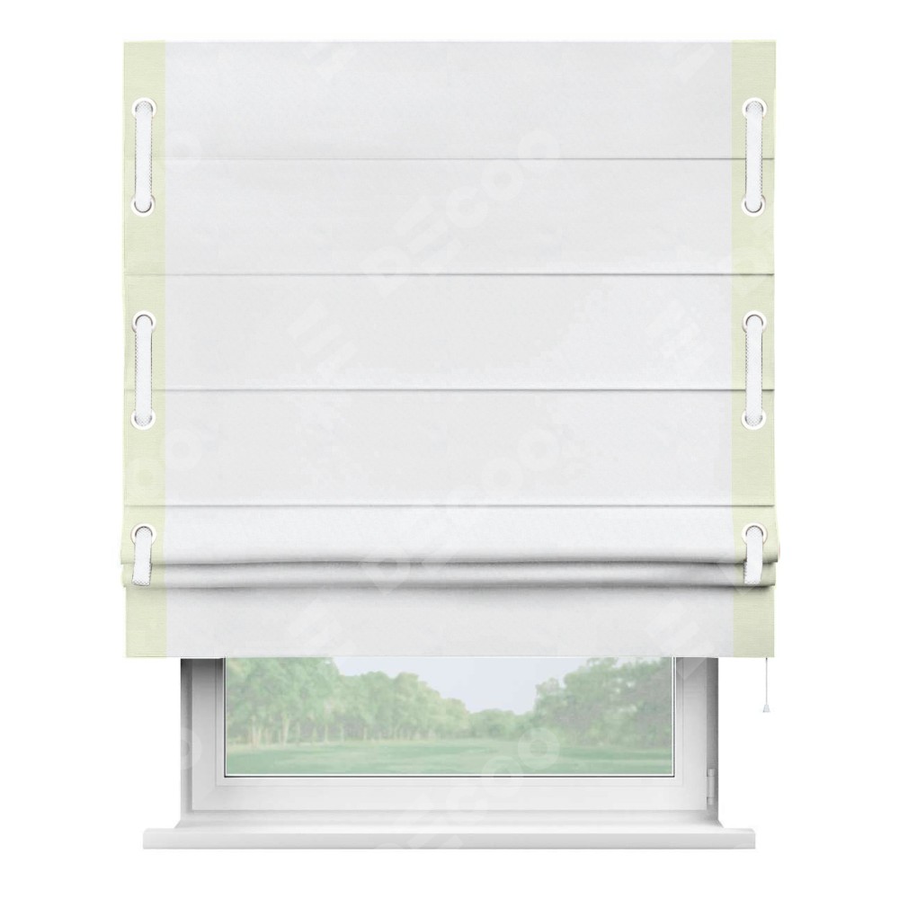 Римская штора «Кортин» для проёма, вельвет белоснежный с кантом Стрим Дуо (люверсы с пояском)