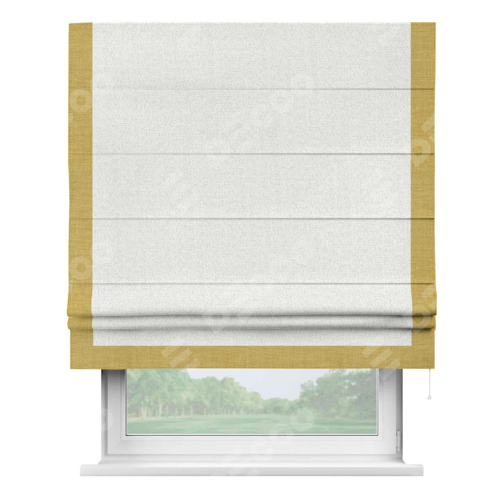 Римская штора с отделкой кантом «Виктория», пошита из ткани лён шампань, артикул: 91399. представляет собой элегантное решение для оконного оформления. Кант по бокам и снизу шторы добавляет изысканности и аккуратности внешнему виду, подчеркивая линии и форму шторы. Этот элемент декора не только украшает, но и выполняет практическую функцию, защищая края ткани от износа. Кант может быть выполнен в контрастном или гармонирующем цвете, что позволяет добиться различных стилевых эффектов и легко вписать штору в интерьер комнаты.
