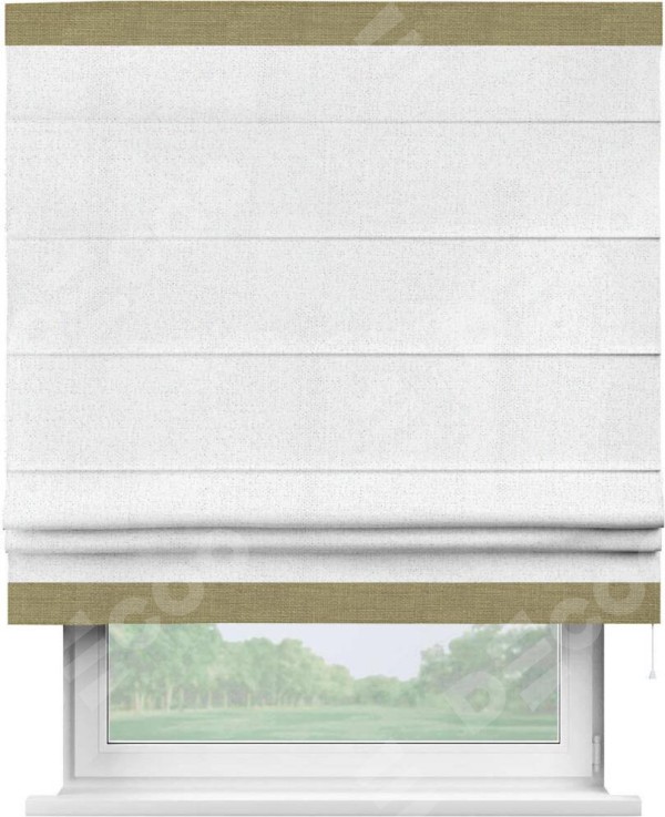 Римская штора «Кортин» для проема, лён белоснежный, с кантом Горизонт