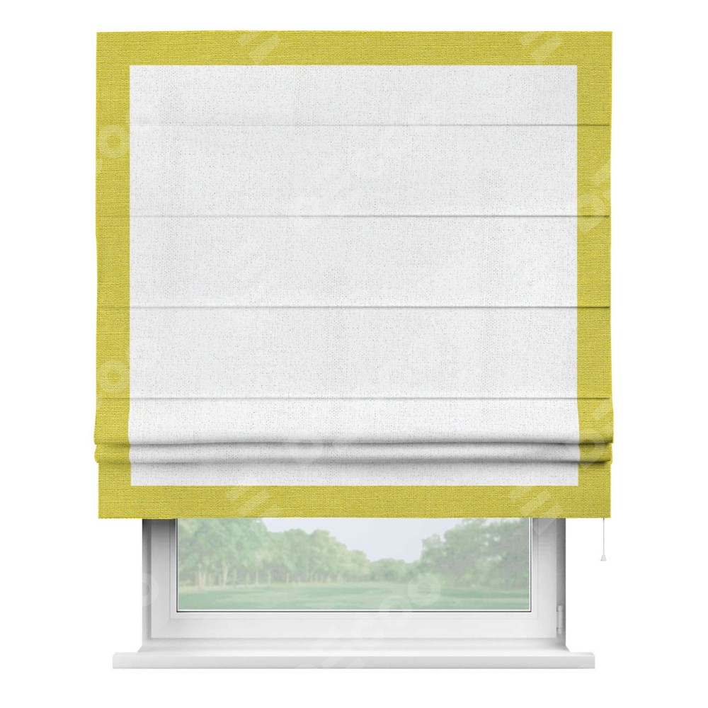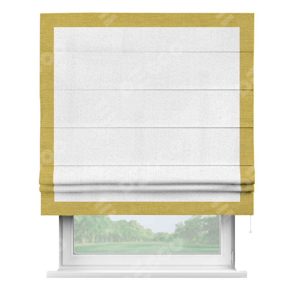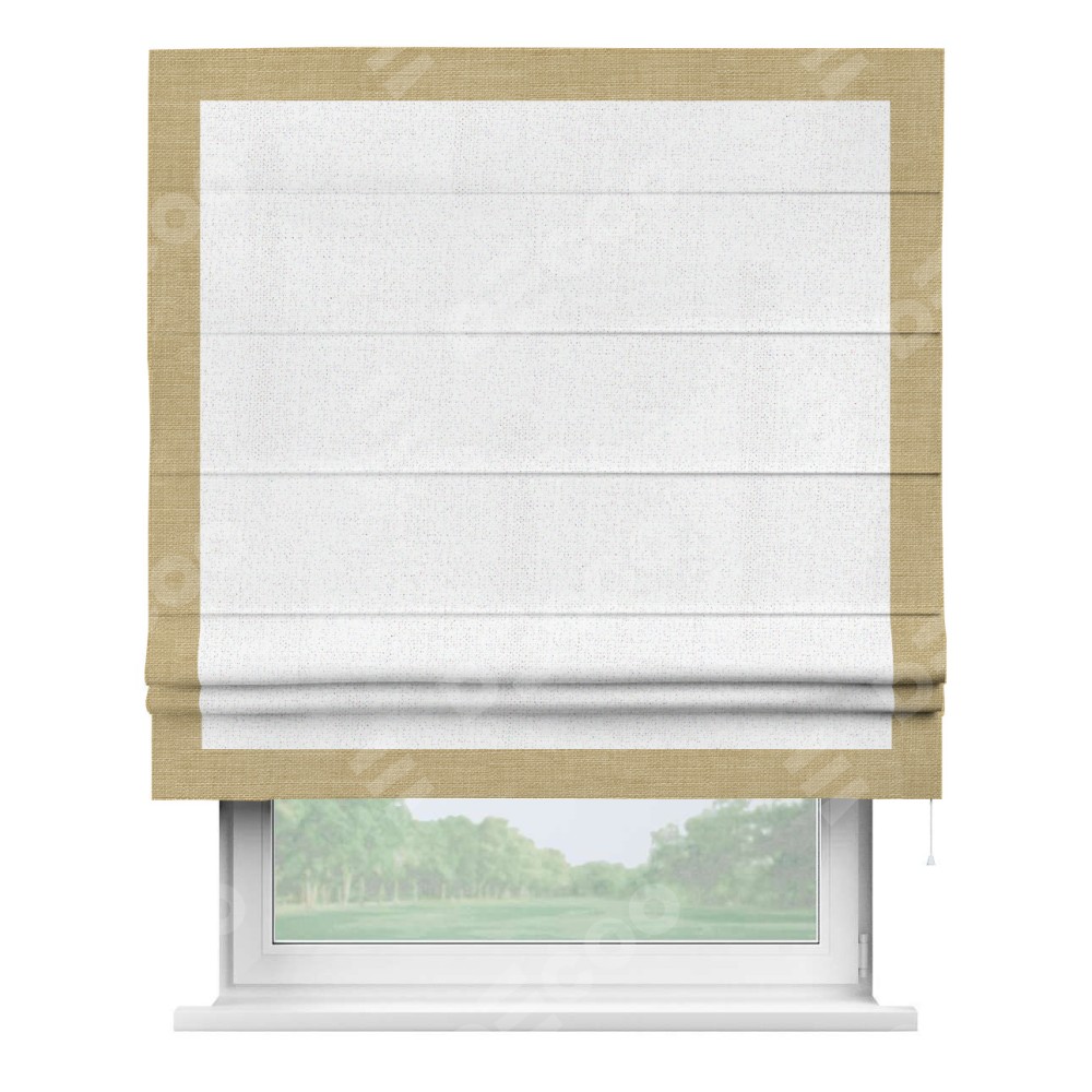 Римская штора «Кортин» для проема, лён белоснежный, с кантом Чесс