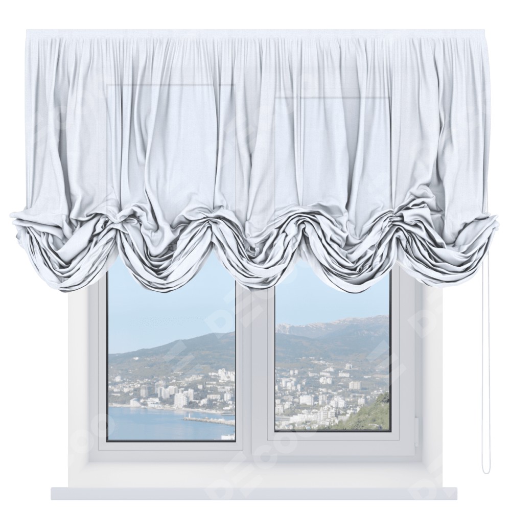 Австрийская штора производителя «Cortin», используется для проёма, пошита из ткани лён белоснежный, артикул ткани 95632. Имеет универсальный механизм и подходит для монтажа: на потолок и на стену.