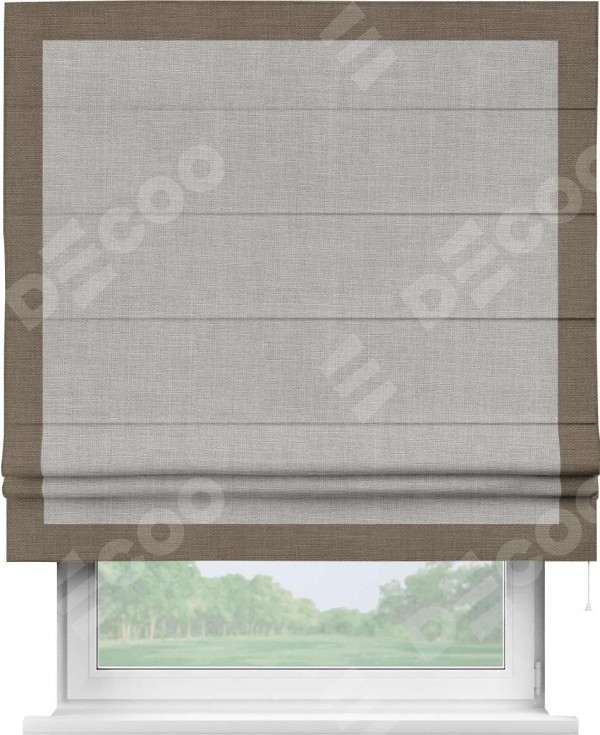 Римская штора «Кортин» для проёма, лён серый, с кантом Чесс