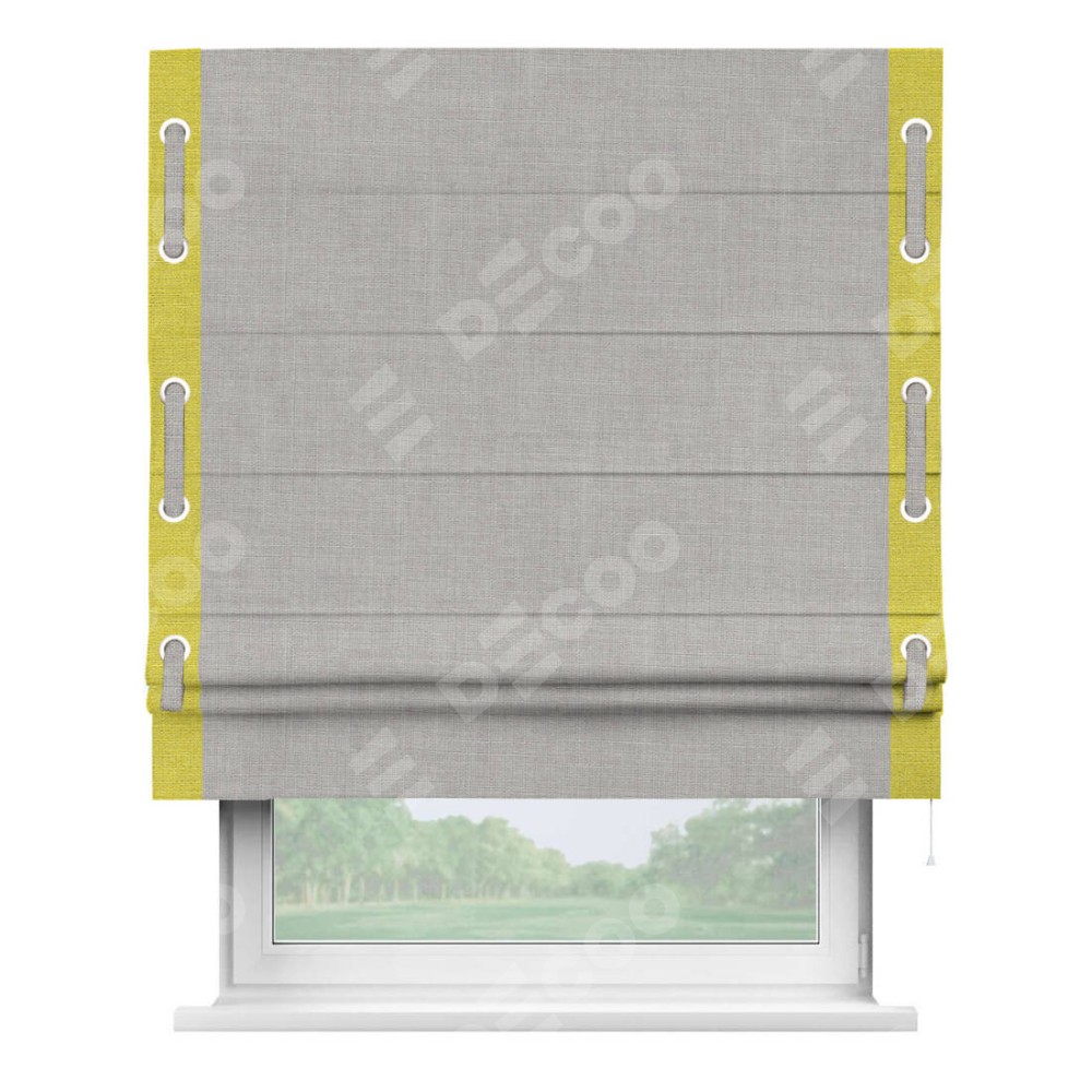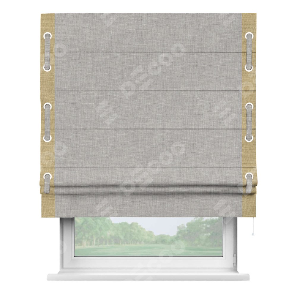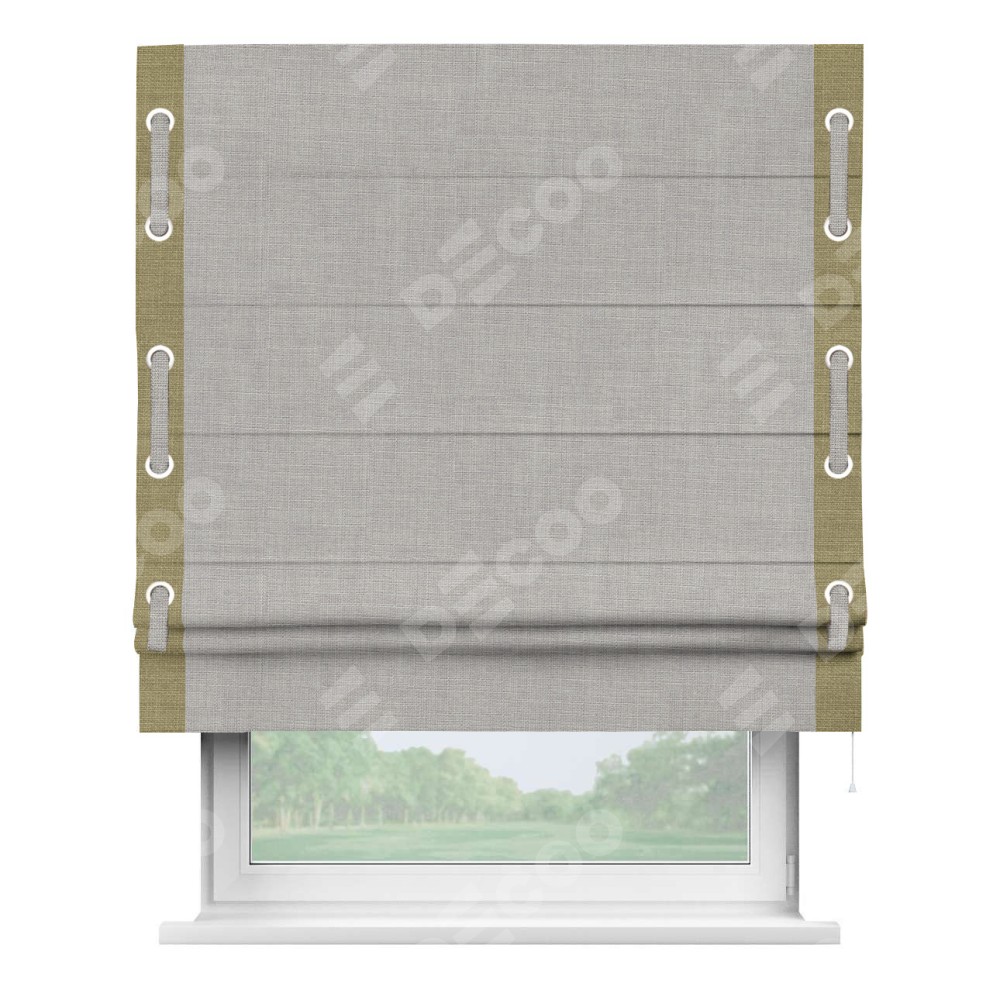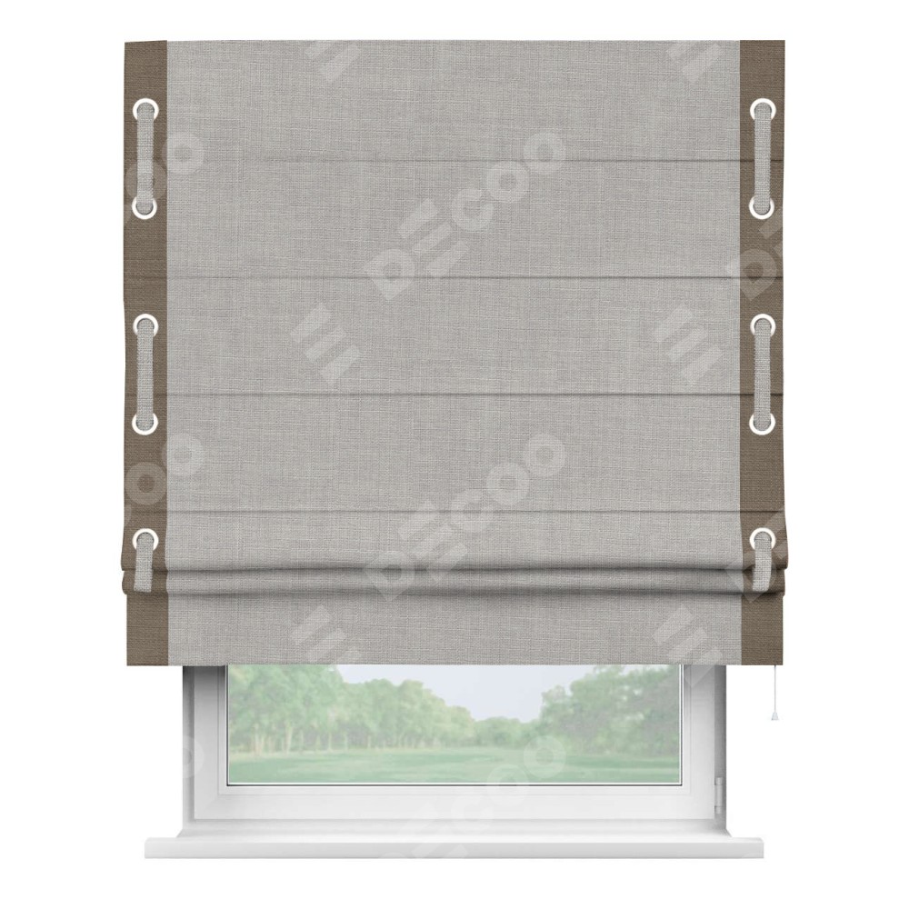 Римская штора «Кортин» для проёма, лён серый, с кантом Стрим Дуо (люверсы с пояском)