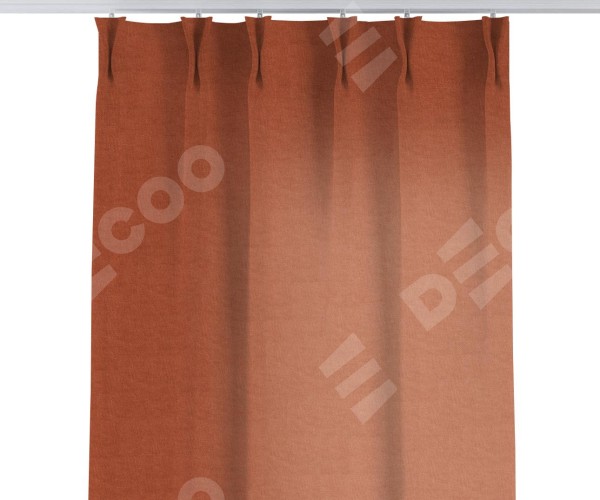 Комплект прямых штор, от производителя «Cortin», пошиты из ткани канвас терракотовый, артикул ткани v-107. С изнаночной стороны в верхней части штор пристрачивается шторная лента с декоративными складками «Кустик». Для создания элегантных складок рекомендуемый коэффициент 1:2 (на 100 см. ширины проёма 200 см. ширины ткани). Важно! Ширина штор указана без учёта коэффициента сборки!