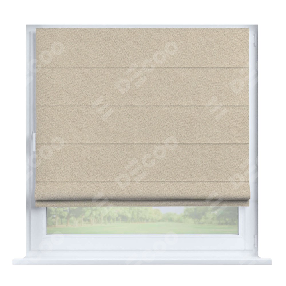Римская штора производителя «Cortin», устанавливается на створку окна, пошита из ткани блэкаут однотонный кофейно-бежевый, артикул 91566−1. Штора шьётся по индивидуальным размерам, для данного типа римской шторы возможная ширина от 35 до 150 см., высота до 250 см.