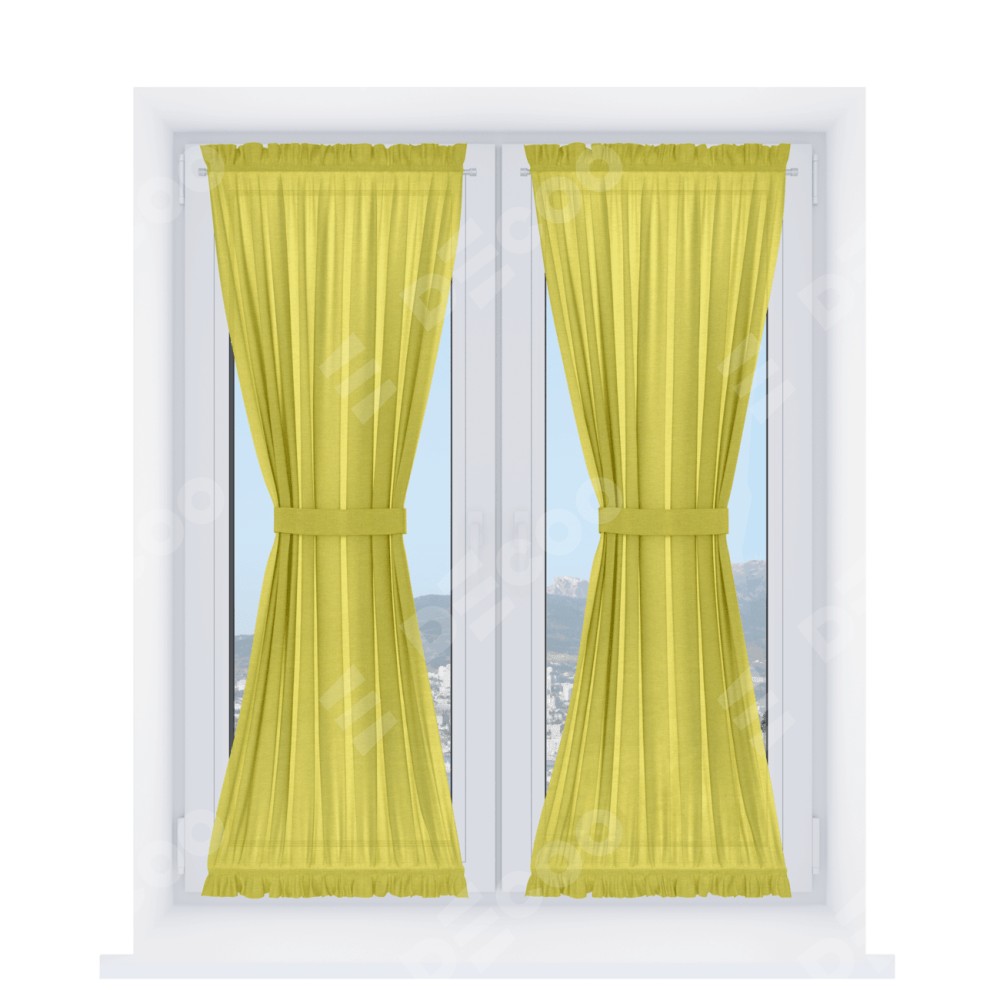Штора «Песочные часы» производителя «Cortin», используется для створок окон и дверей, пошита из ткани лён салатовый, артикул ткани 53437.