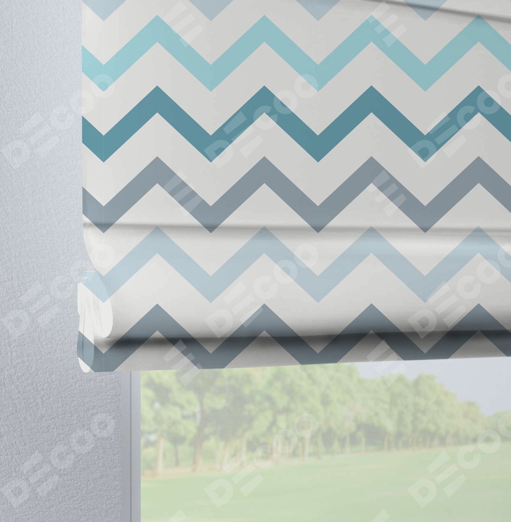 Римская штора производителя «Cortin», используется для проёма, пошита из ткани блэкаут с нанесением сублимационной печати «Небесный шеврон». Данная модель пошита на петлях, комплектуется на выбор круглым карнизом и подходит для монтажа на стену. Римская штора на петлях имеет простую систему регулировки высоты, отличительным преимуществом данной модели является простой способ монтажа. Достаточно повесить ее на трубу и штора готова!