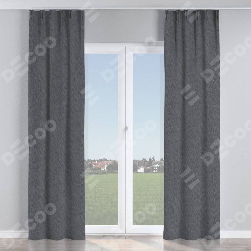 Комплект прямых штор, от производителя «Cortin», пошиты из ткани лён димаут графит, артикул ткани 140644. С изнаночной стороны в верхней части штор пристрачивается шторная лента с декоративными складками «Кустик». Для создания элегантных складок рекомендуемый коэффициент 1:2 (на 100 см. ширины проёма 200 см. ширины ткани). Важно! Ширина штор указана без учёта коэффициента сборки!