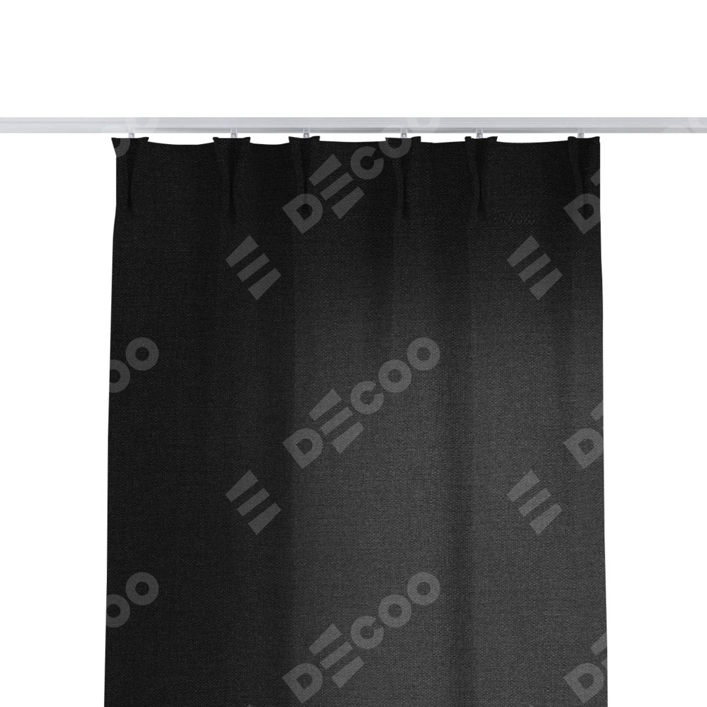 Комплект прямых штор, от производителя «Cortin», пошиты из ткани лён черный, артикул ткани 140815. С изнаночной стороны в верхней части штор пристрачивается шторная лента с декоративными складками «Кустик». Для создания элегантных складок рекомендуемый коэффициент 1:2 (на 100 см. ширины проёма 200 см. ширины ткани). Важно! Ширина штор указана без учёта коэффициента сборки!