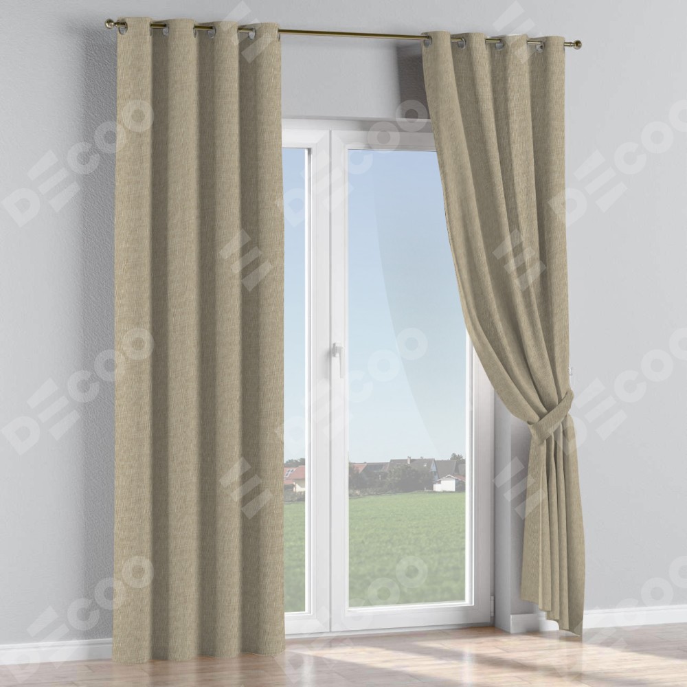 Комплект прямых штор, от производителя «Cortin», пошиты из ткани лён бежевый, артикул ткани 143839. Данная модель пошита на люверсах, комплектуется на выбор круглым карнизом и подходит для монтажа на стену или потолок. Для создания элегантных складок рекомендуемый коэффициент 1:2 (на 100 см. ширины проёма 200 см. ширины ткани). Важно! Ширина штор указана без учёта коэффициента сборки!