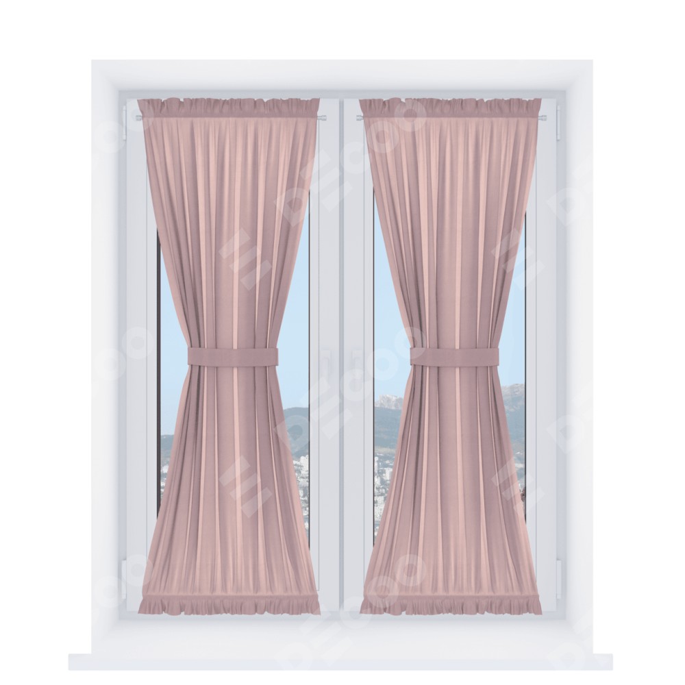 Штора «Песочные часы» производителя «Cortin», используется для створок окон и дверей, пошита из ткани вельвет розовая пудра, артикул ткани 14132.
