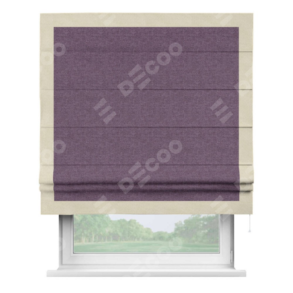 Римская штора производителя «Cortin», используется для проёма, пошита из ткани лён димаут брусника, артикул 16. Отделка шторы кантом «Чесс», ткань для канта используется из льна димаут разной расцветки на выбор. Имеет универсальный механизм и подходит для монтажа: на потолок, на стену и в нишу.