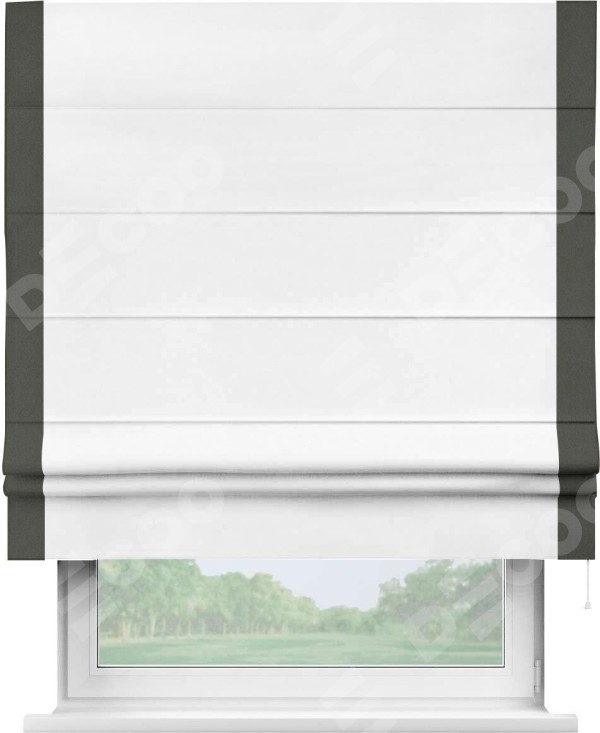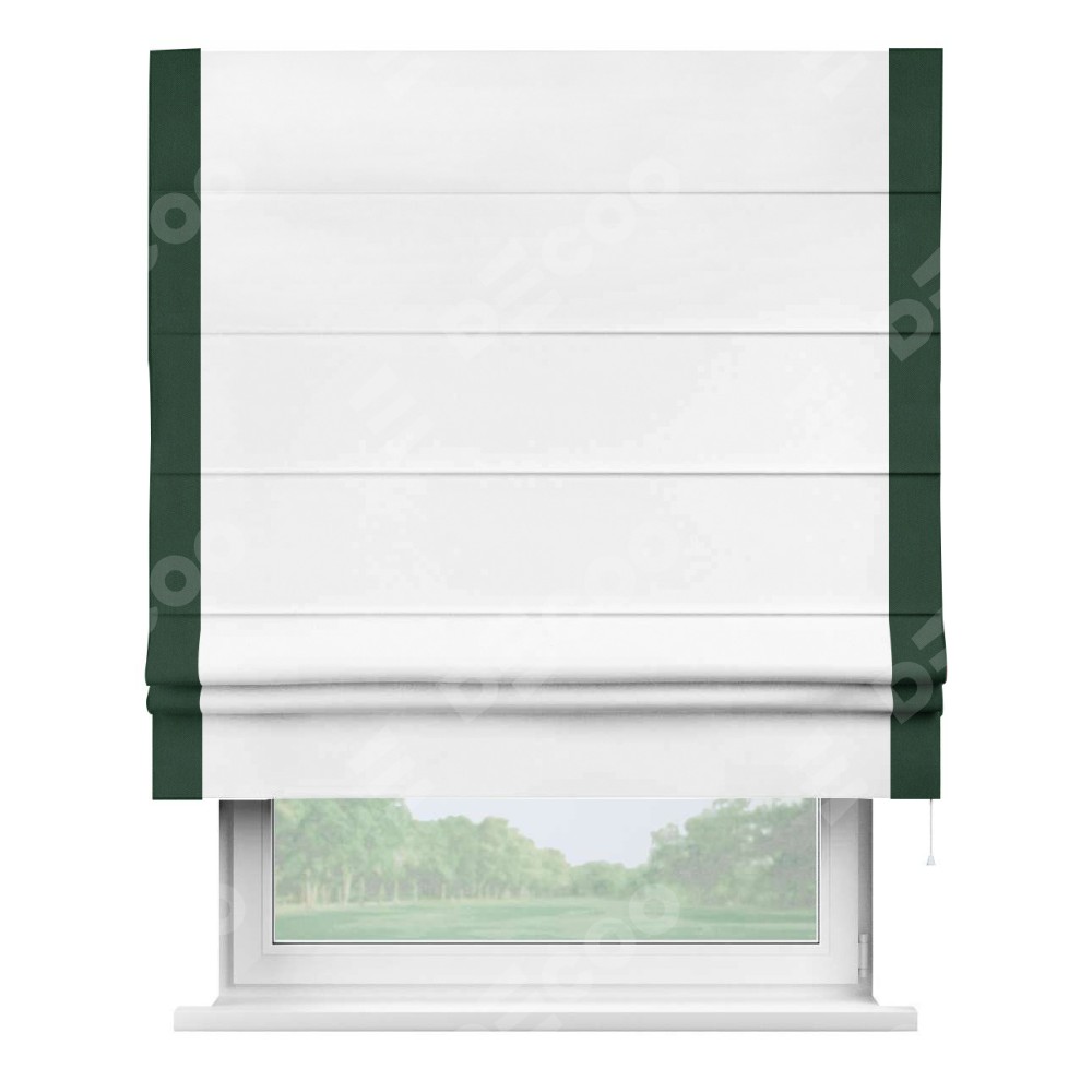 Римская штора «Кортин» для проёма, вайтаут однотонная белая с кантом Стрим Дуо