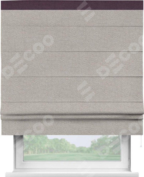 Римская штора «Кортин» для проема, лён димаут серо-бежевый с кантом Кинг