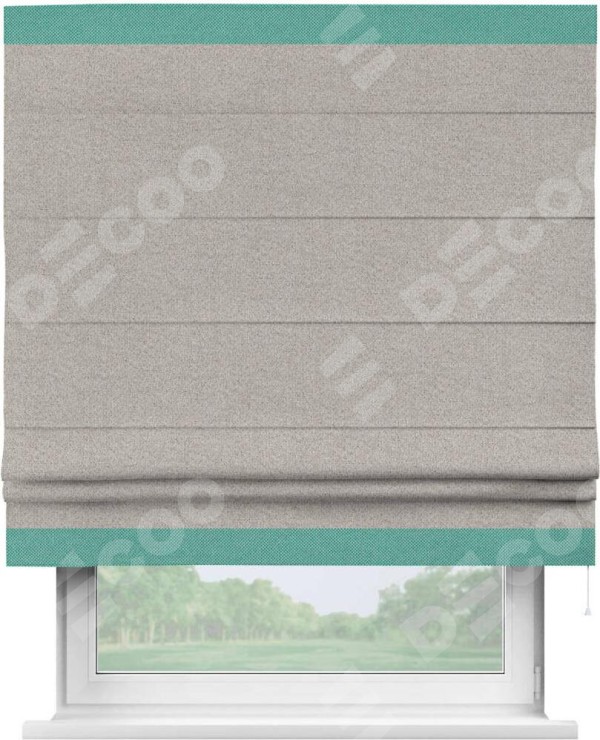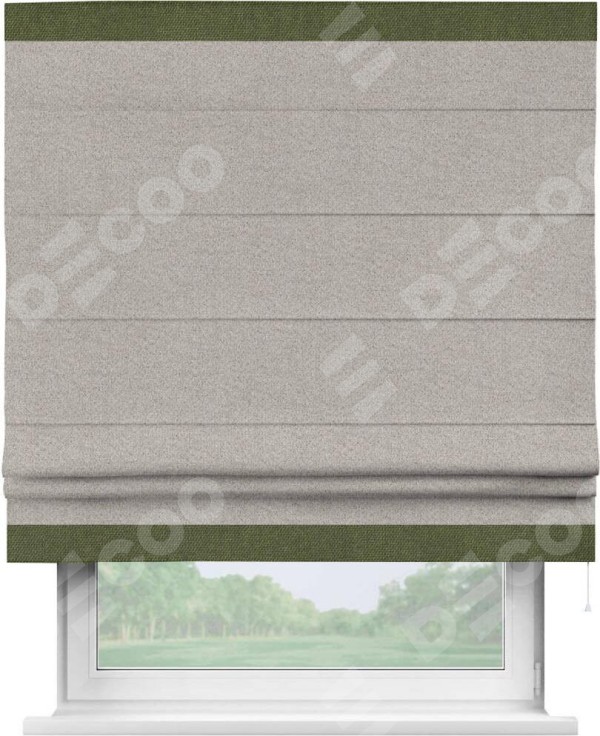Римская штора «Кортин» для проема, лён димаут серо-бежевый с кантом Горизонт