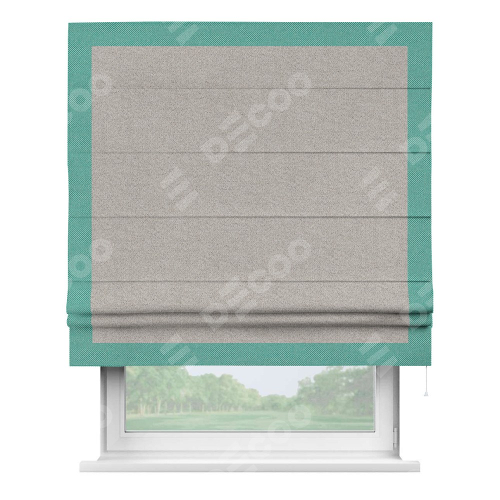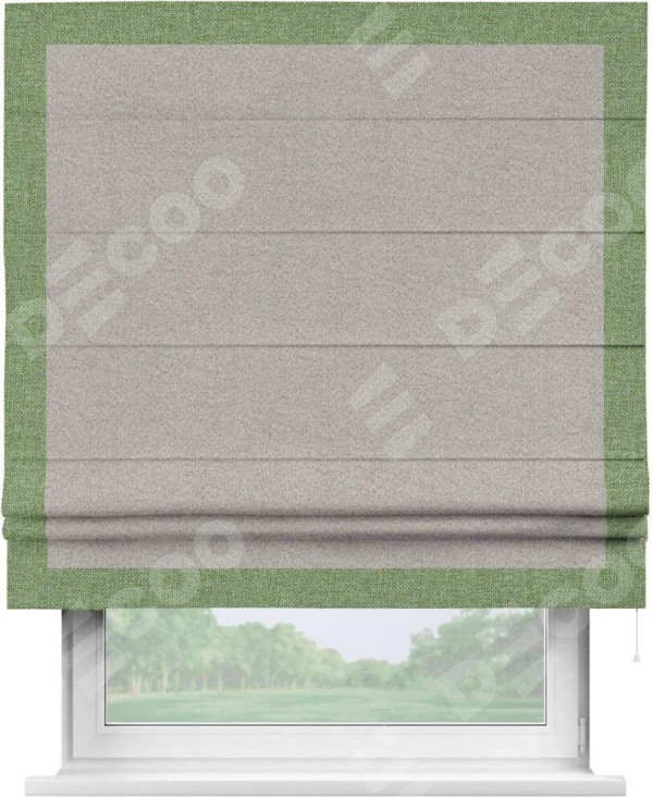 Римская штора «Кортин» для проема, лён димаут серо-бежевый с кантом Чесс