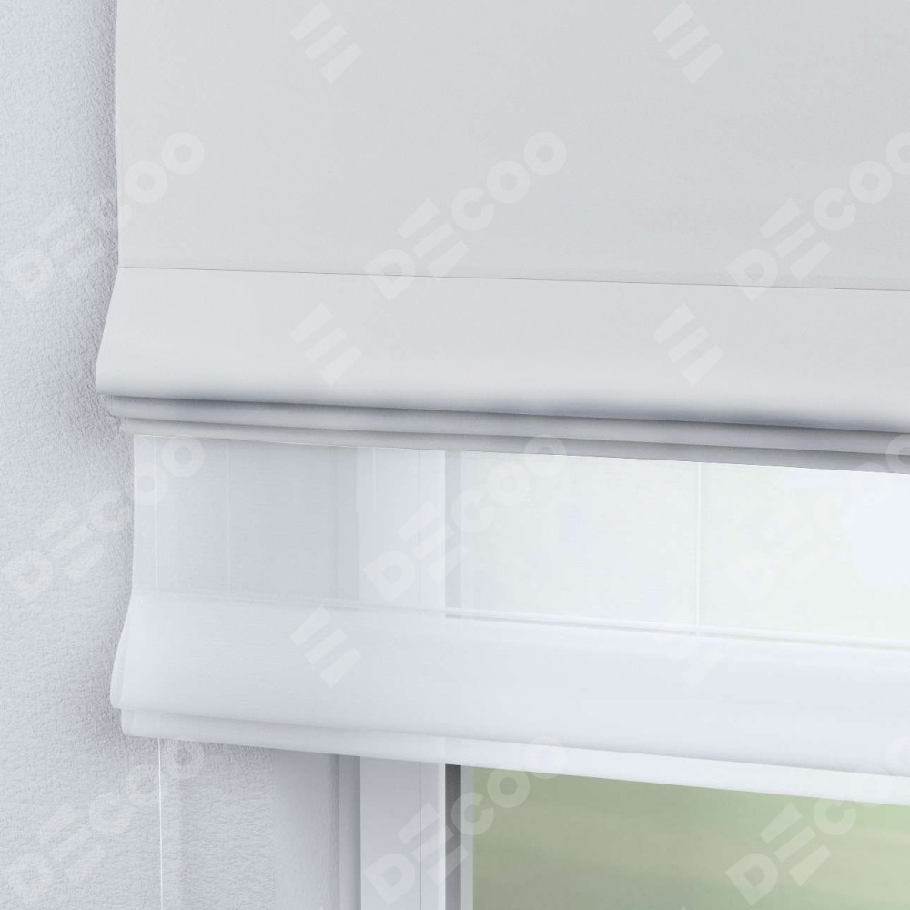 Двойная римская штора «День-ночь» от производителя Cortin предназначена для использования в проёмах. Эта штора уникальна тем, что состоит из двух полотен. На лицевой стороне находится лён димаут молочный (артикул: 29), обеспечивающий эффективное затемнение. В комплект также входит вторая ткань — легкий белый тюль (артикул: V-01), который добавляет изящества и легкости оформлению окна. Кроме того, доступны и другие разновидности ткани тюль, выбор которых доступен по  ссылке .